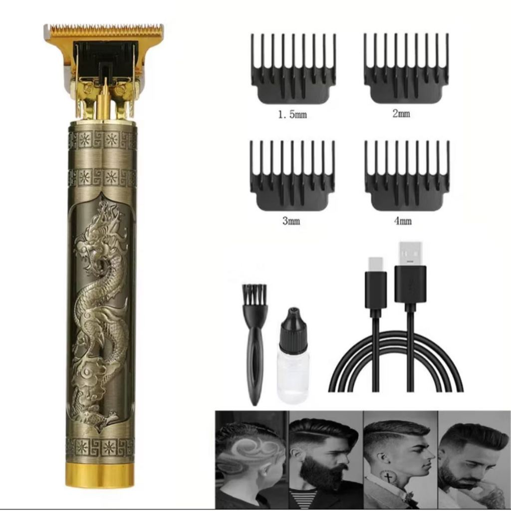 Máquina Profissional Dragão Acabamento Sem Fio Cabelo Barba Pezinho Personalizada Com Limitador Lâmina Ajustável Recarregável 4 Pentes Óleo Escovinha