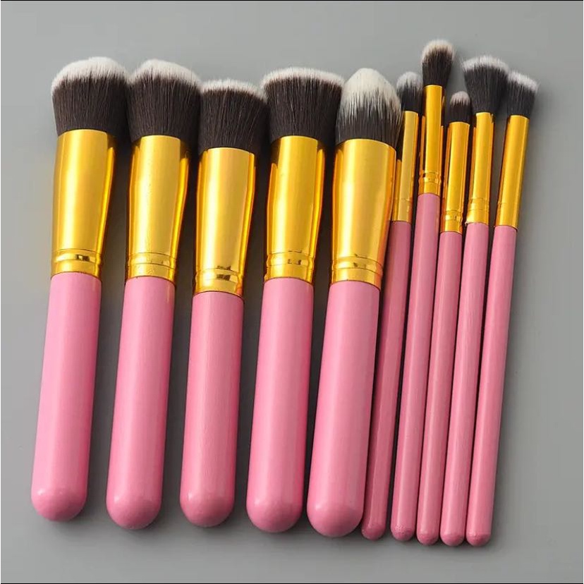 Kit 10 peças pincel kabuki precisão Conjunto de Maquiagem para Sombra Delineador Lábios Pó Base