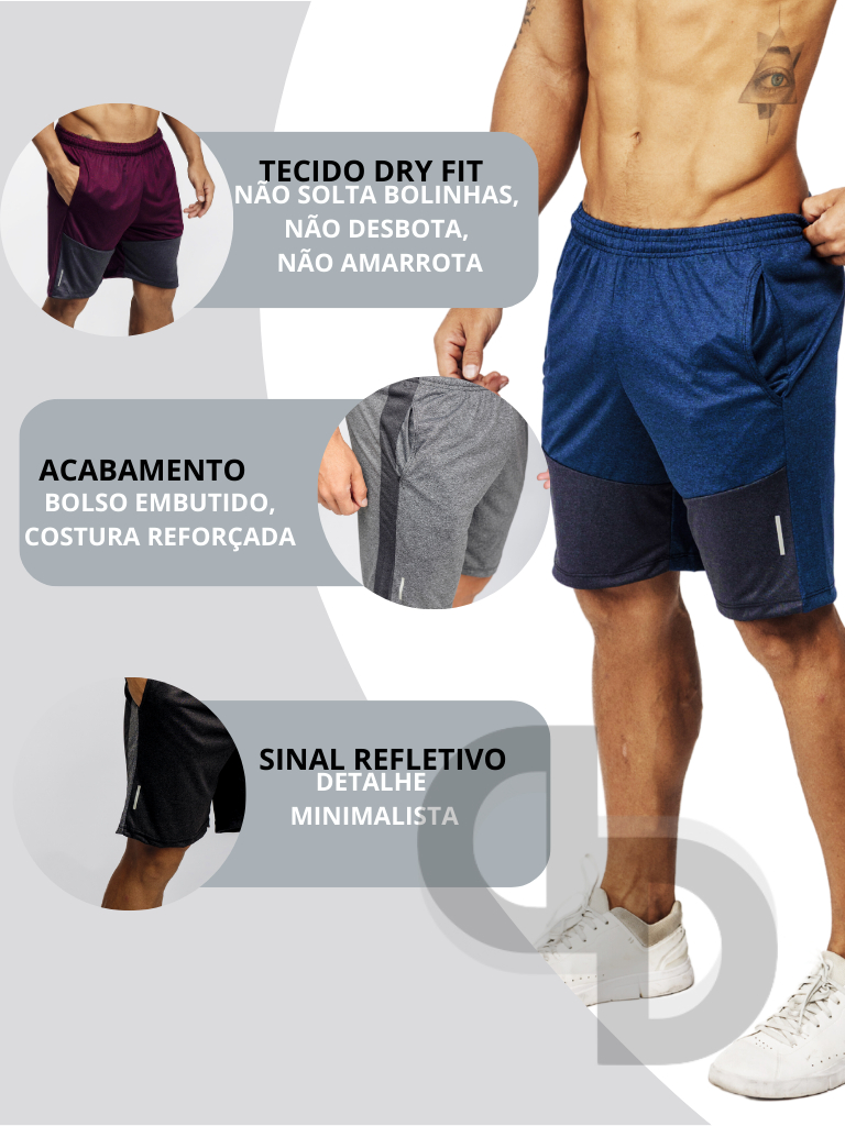 Kit 3 Shorts Esportivo Masculino Básico