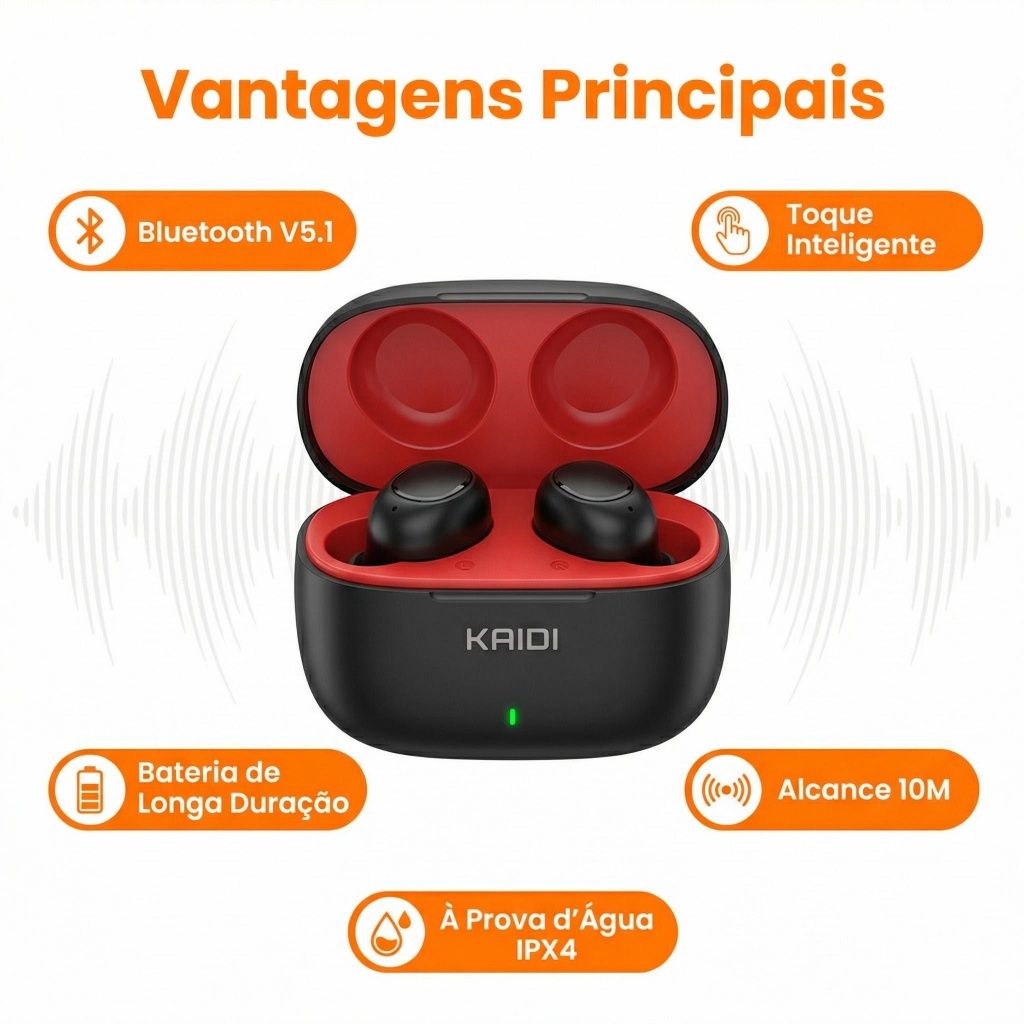 Fone de Ouvido Sem Fio Bluetooth 5,4 Kaidi 771 Original Para Sua Academia Corrida IPX4 prova agua