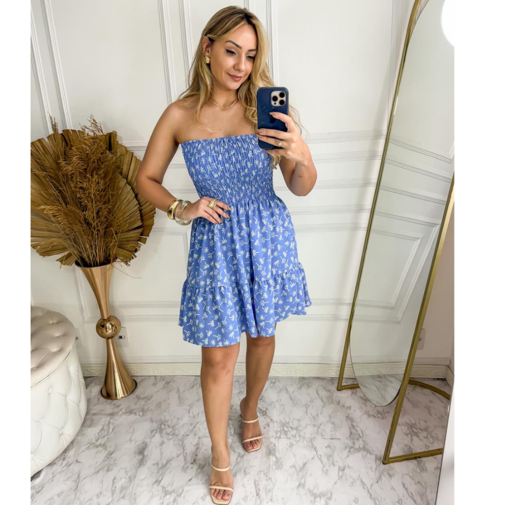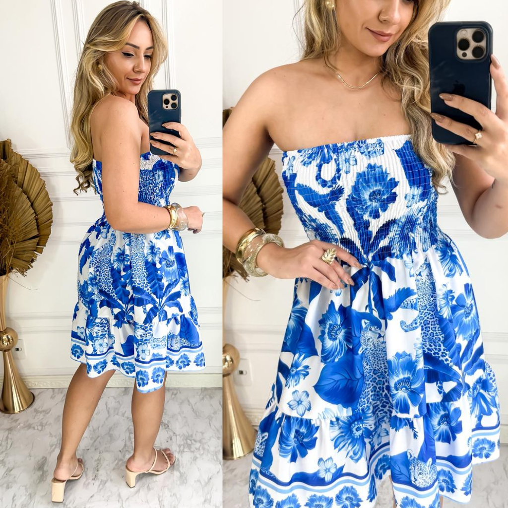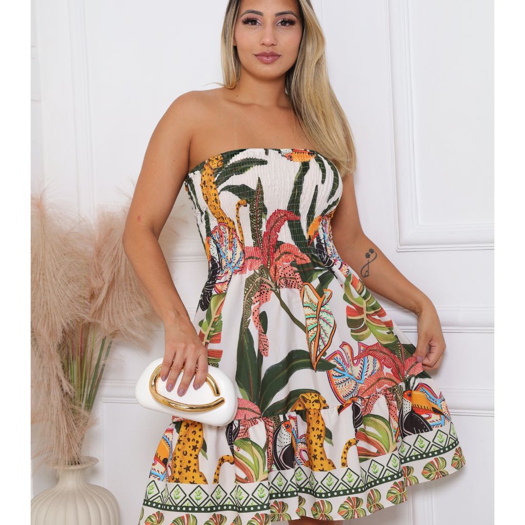 Vestido Curto Lastex Estampado