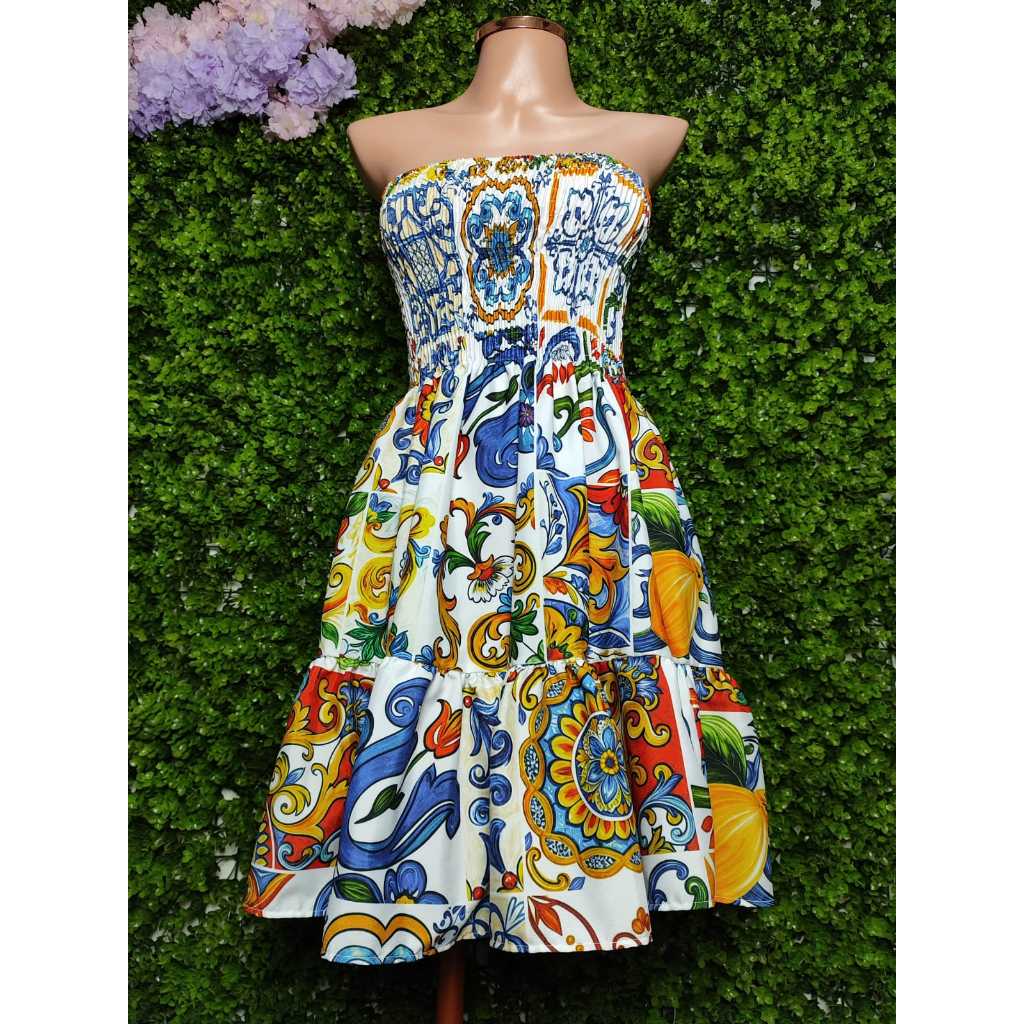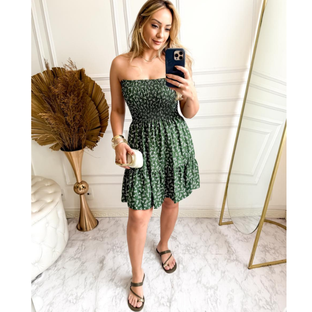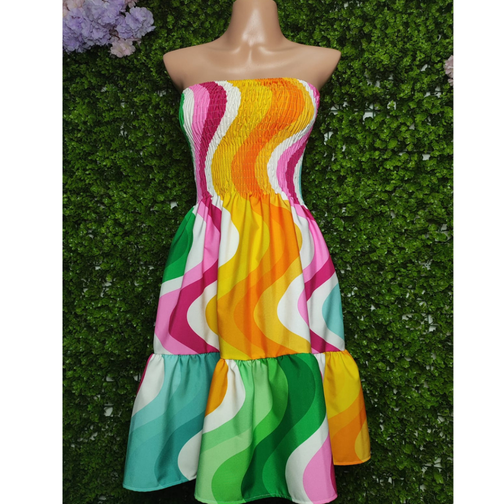 Vestido Curto Lastex Estampado