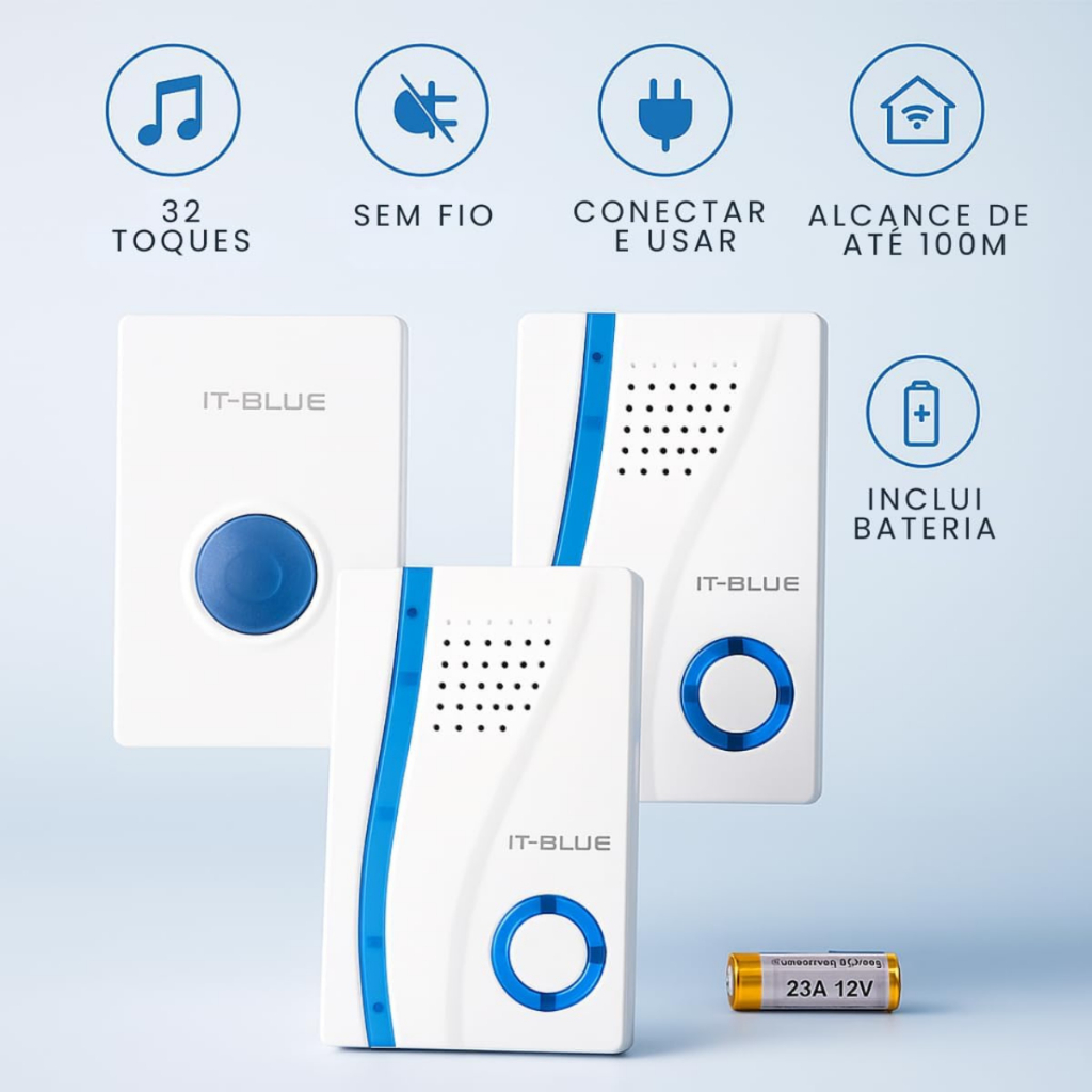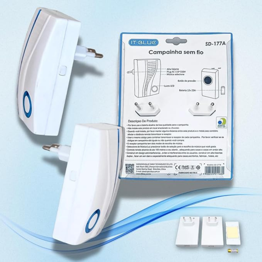 Campainha Elétrica Sem Fio para Casa IT-Blue SD-177A – Kit com Dupla Campainha