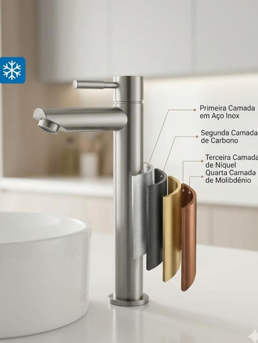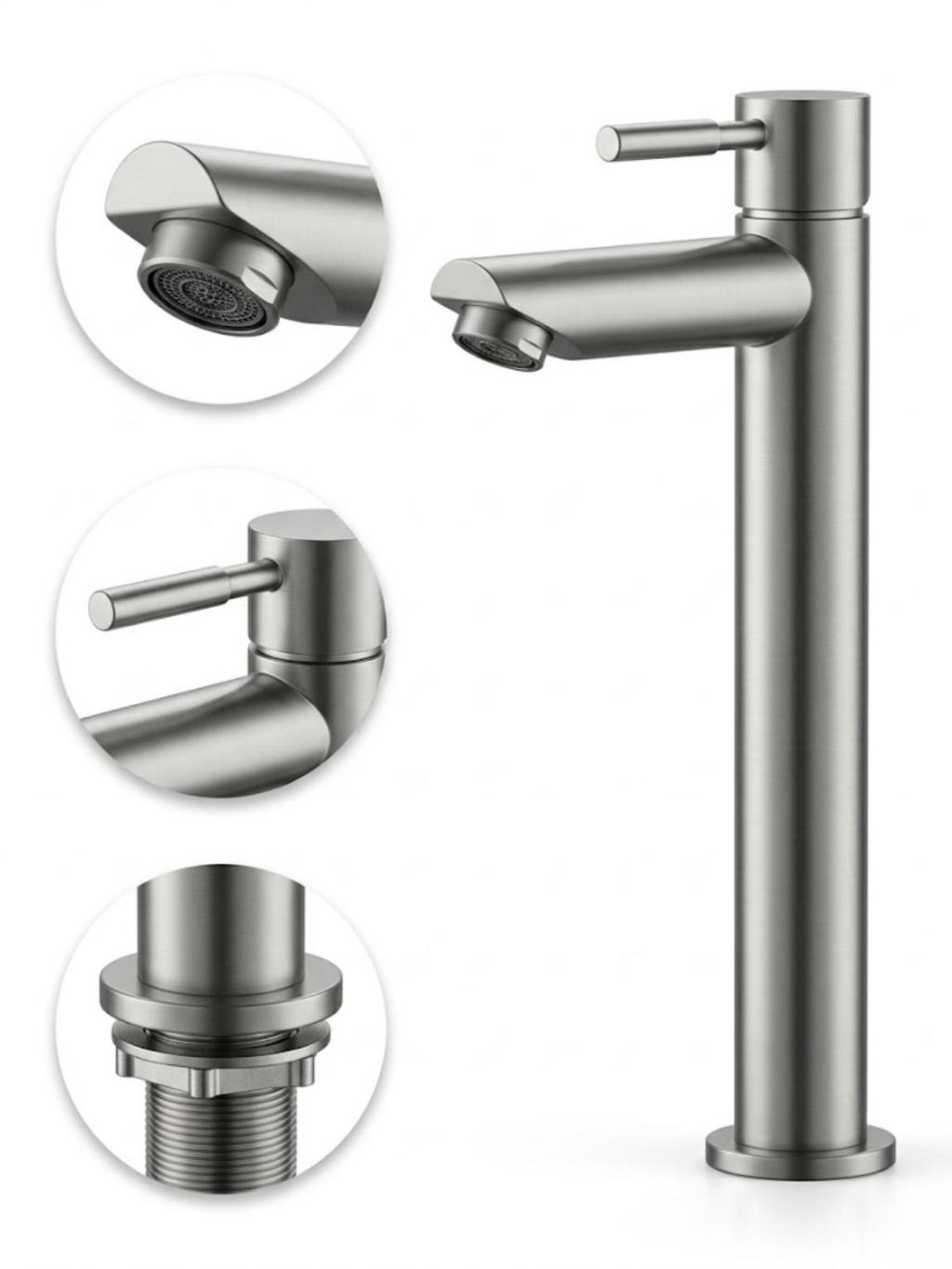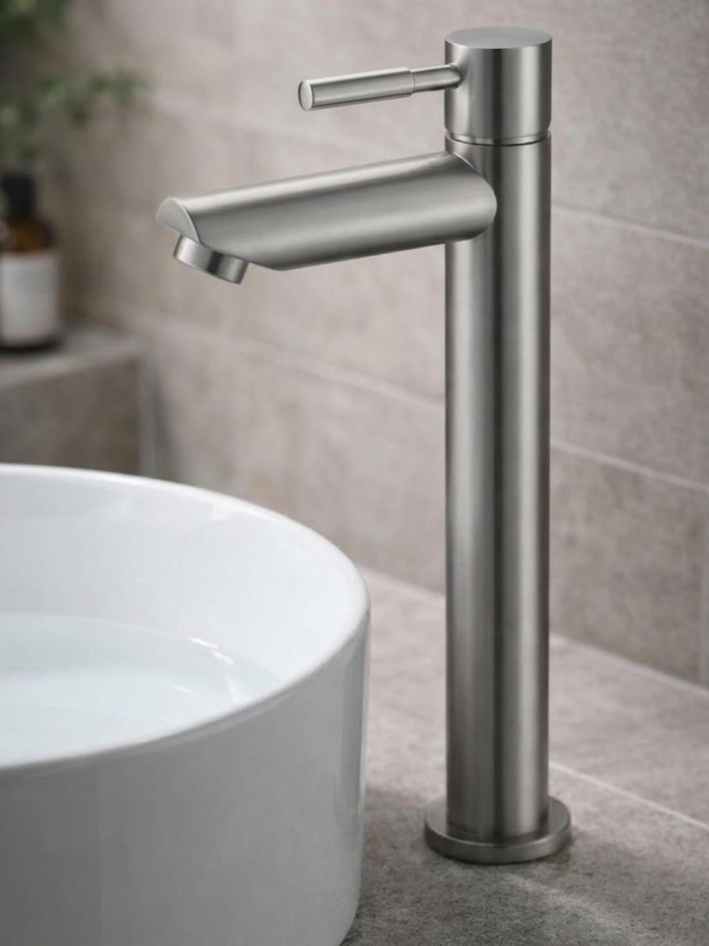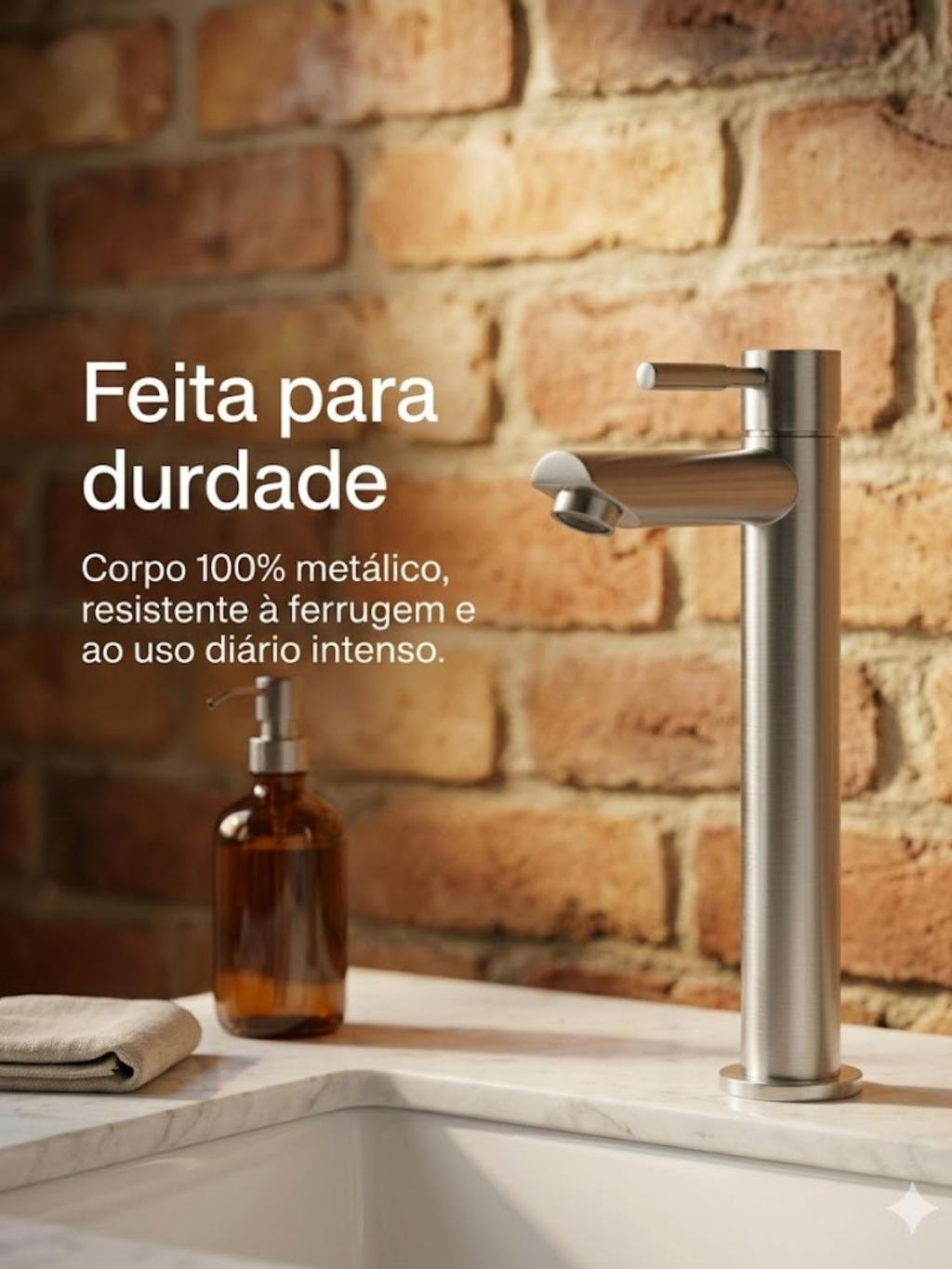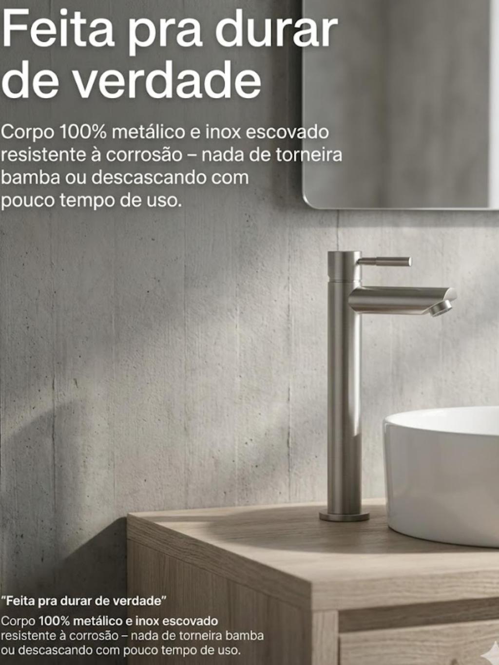 Torneira Banheiro Bancada Bica Alta Luxo Aço Escovado Premium Fosco Inox Metal Aço Escovado Fria