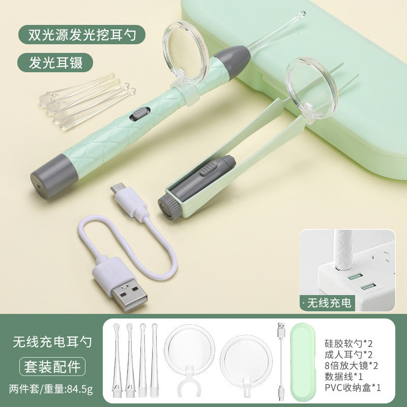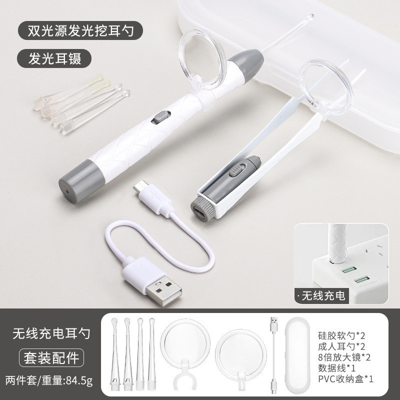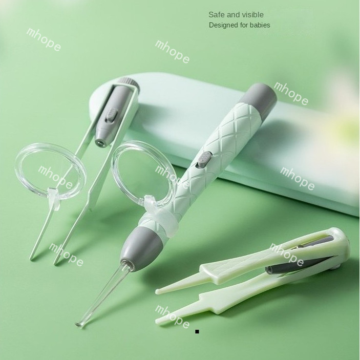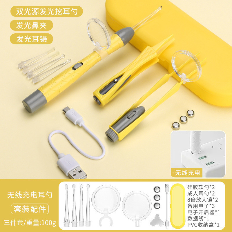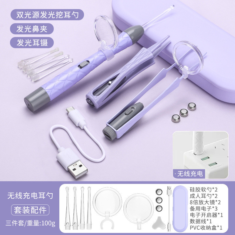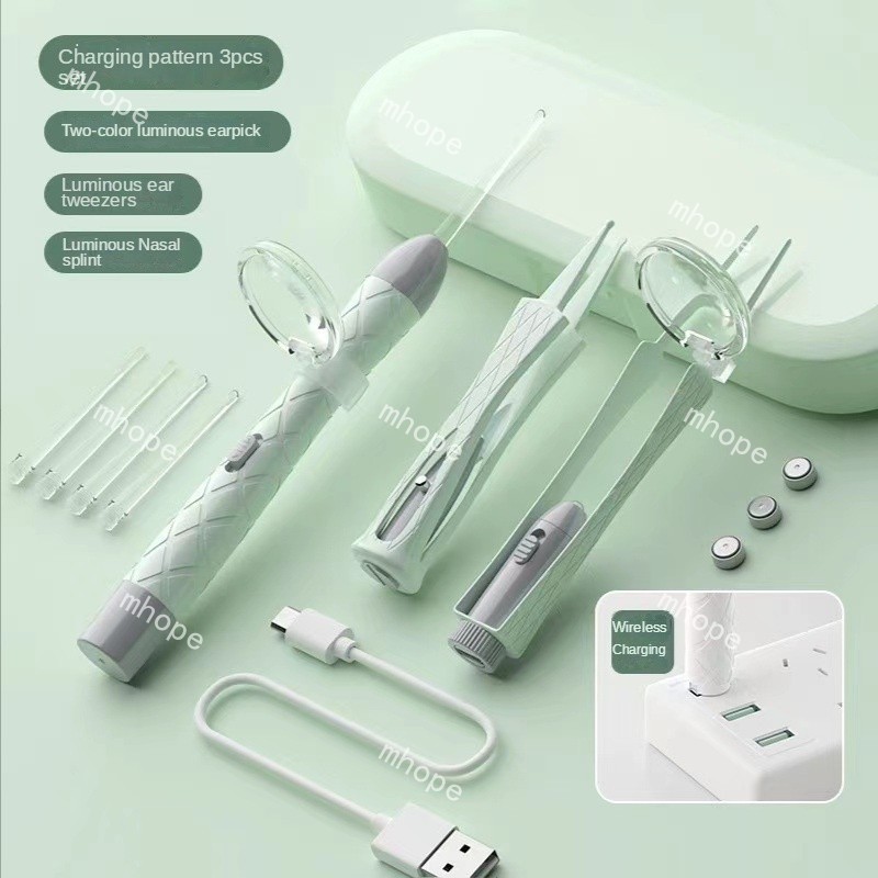 3 Pçs Conjunto De Colher De Orelha Luminosa Remoção De Cera De Ouvido Pinças De Limpeza LED Luz Earpick Nariz Clipe Cria