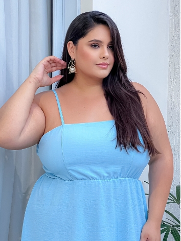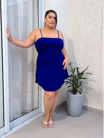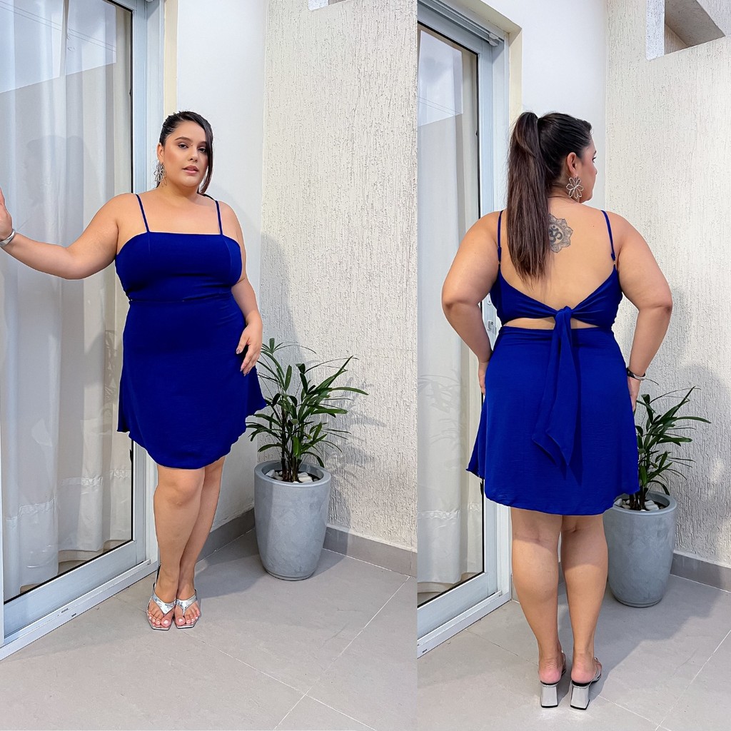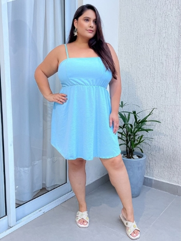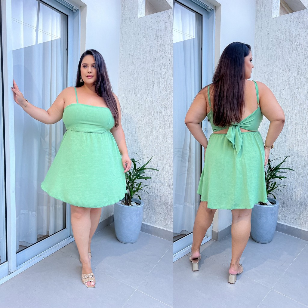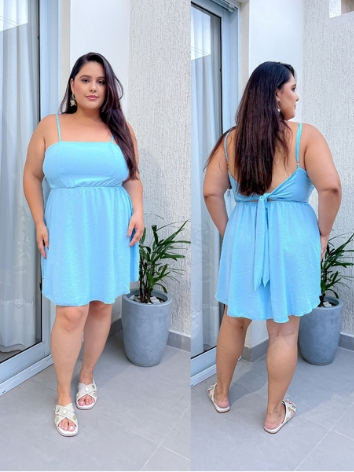 Vestido Plus Size Feminino Curve Curto Soltinho Com Alcinha Ajustável Costas Aberta Moda Verão