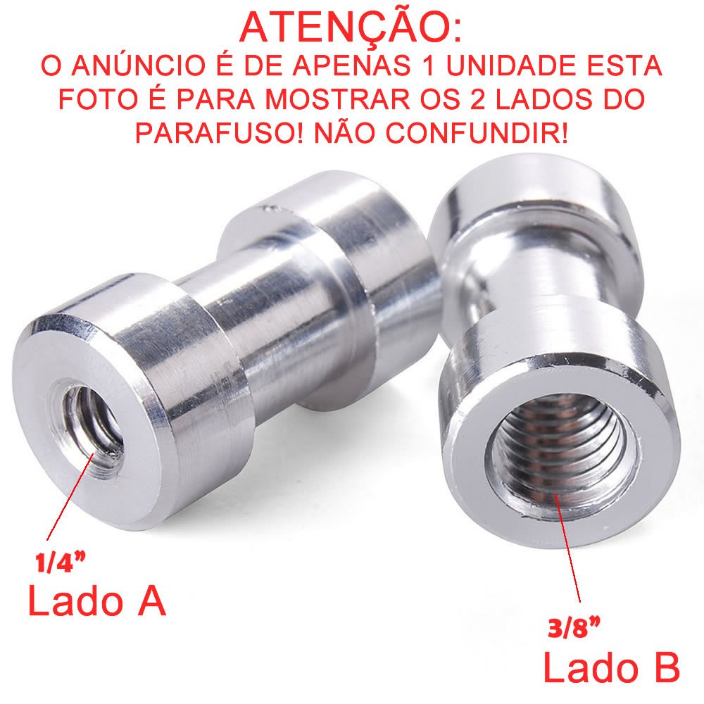 Adaptador Pino Redutor Conversor c/ 2 Roscas Fêmeas 1/4" - 3x8" para Tripé Parafuso de Conversão Adaptação Fotografia