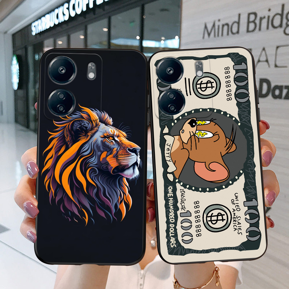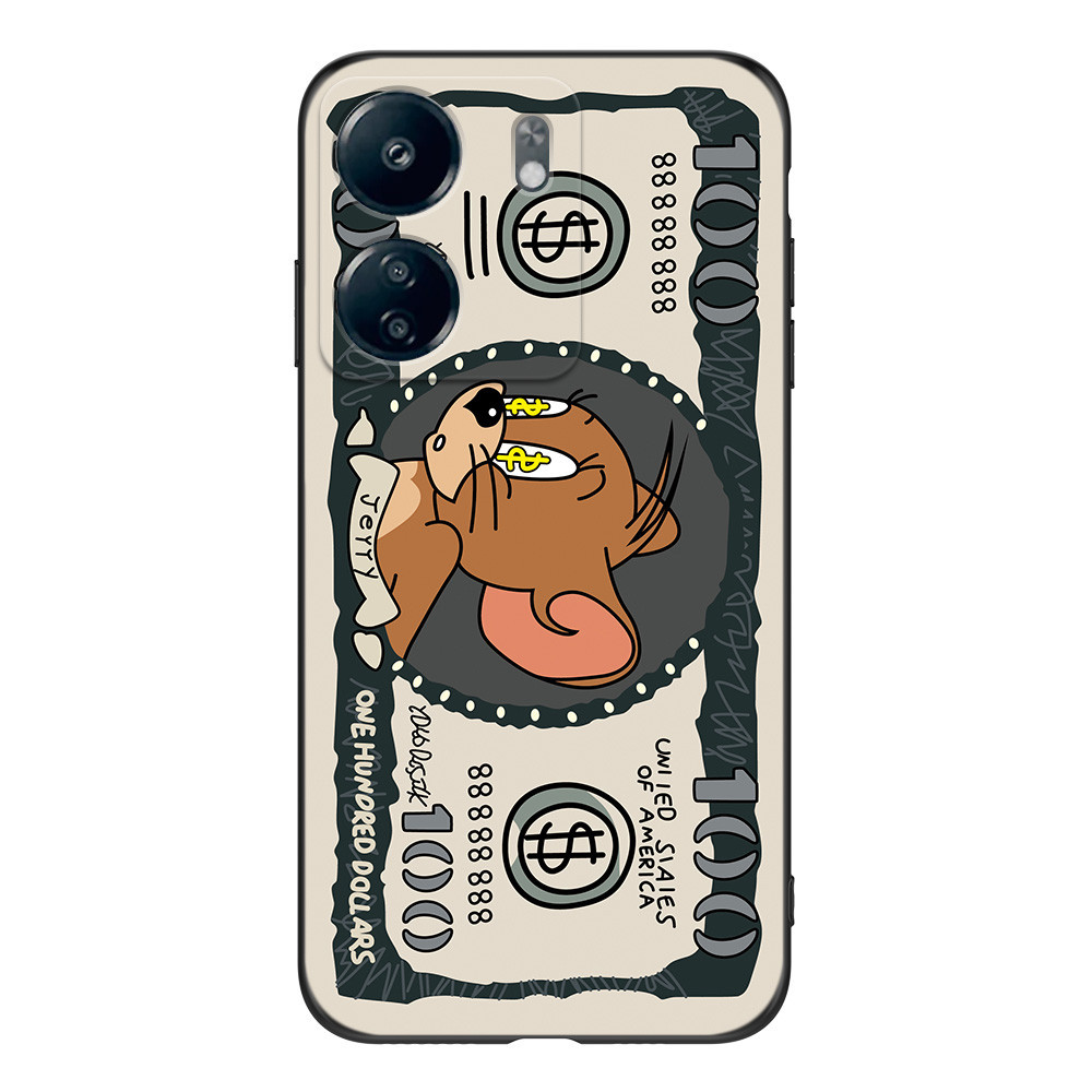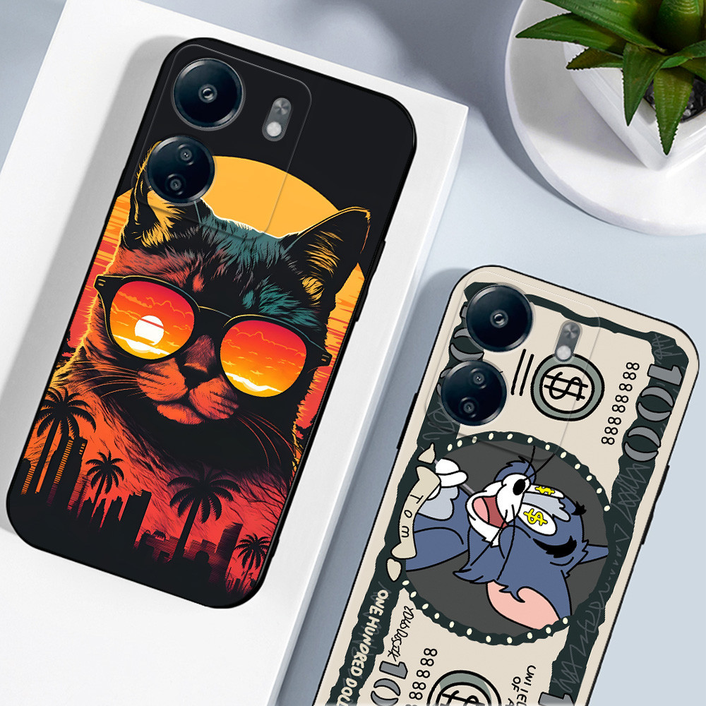 Para xiaomi Redmi 13C 4G POCO C65 Capa Traseira Do Telefone Silicone Macio Protetor De Preto Tpu Engraçada Gato Dólar