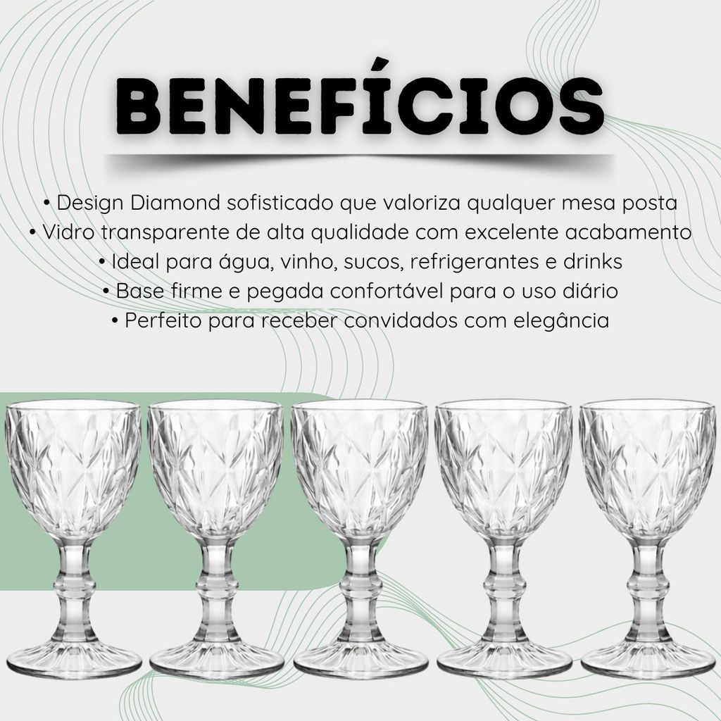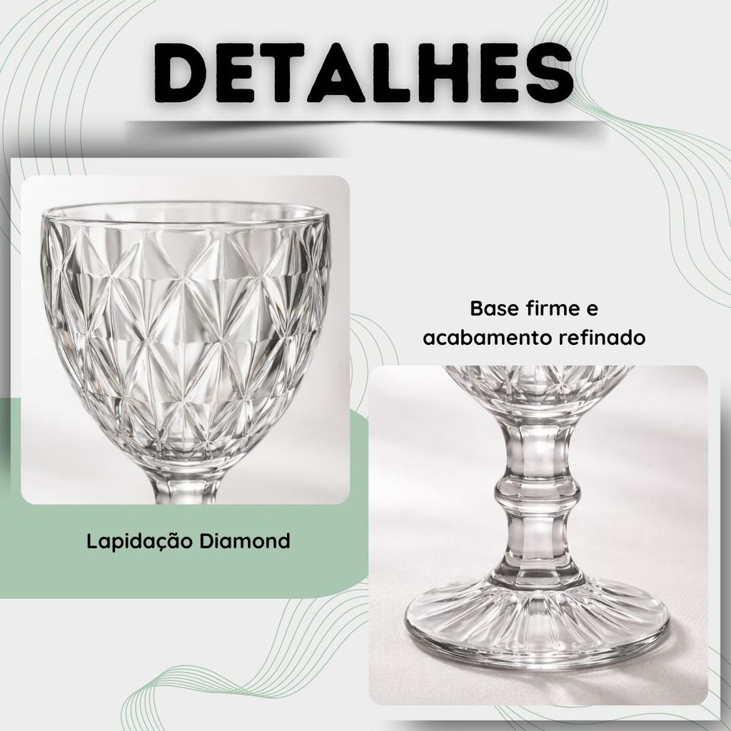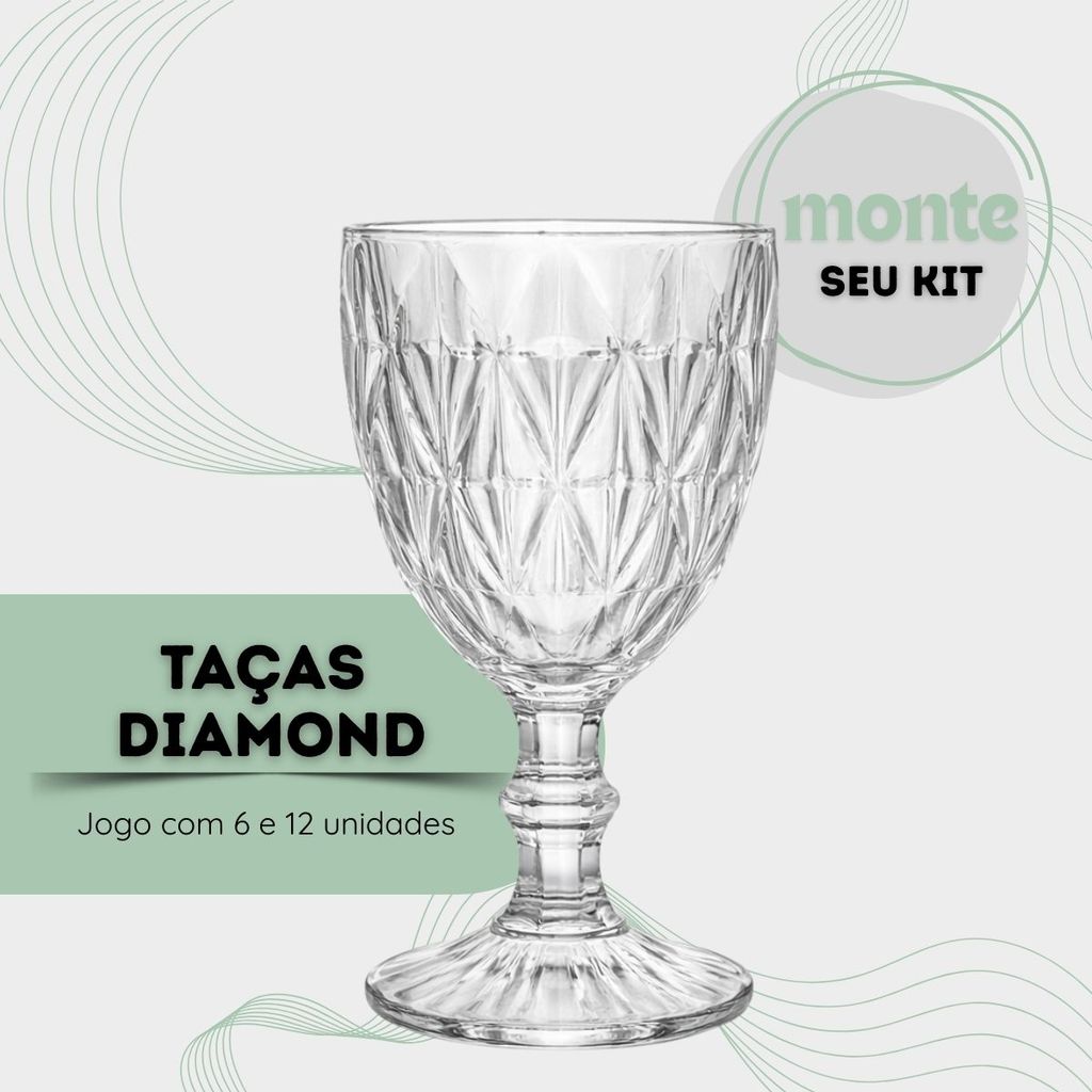Jogo de Taça Diamante Copo Vidro Transparente Taças Abacaxi Gourmet Bico De Jaca 330ml