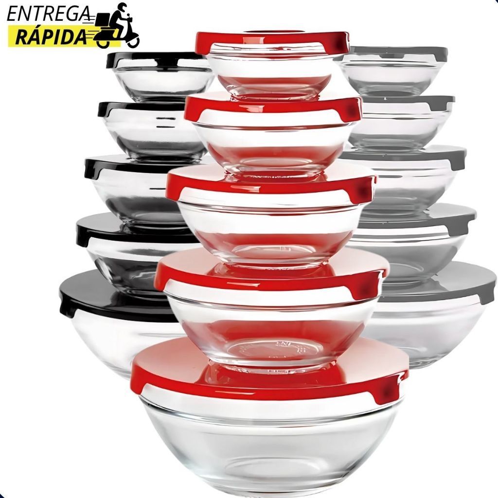 Conjunto 5 Potes Em Vidro Com Tampa Vasilhas Tigelas Bowls Marmita Para Armazenamento De Alimentos