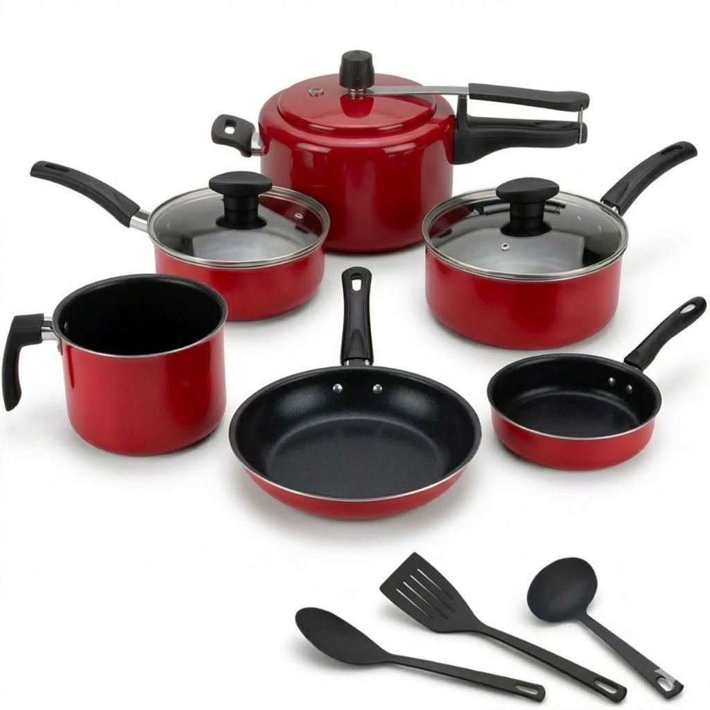 Jogo Panelas 13 Peças C Panela de Pressão 2L Antiaderente ou Kit 09 Pc Frigideira Caçarola Conjunto
