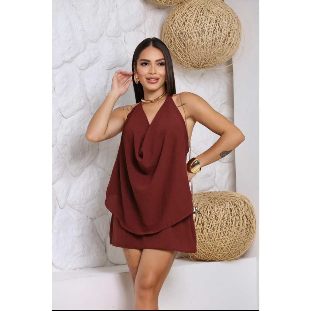 Conjunto Feminino Verão Short Saia Com Blusa Frente Única Decotada Casual Elegante