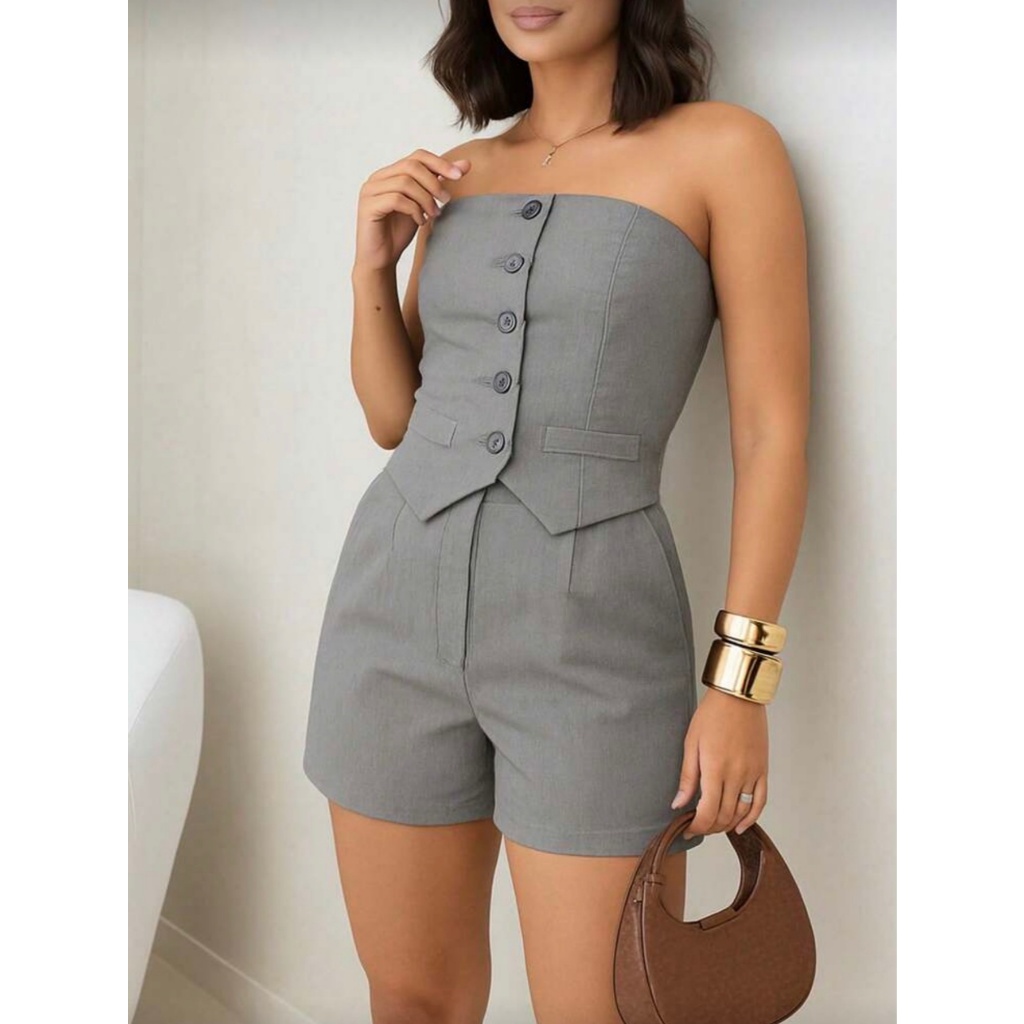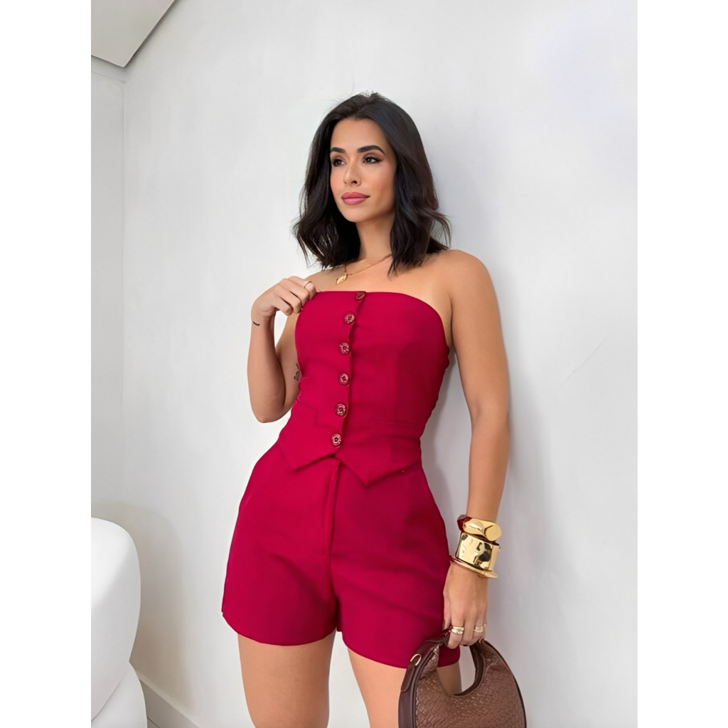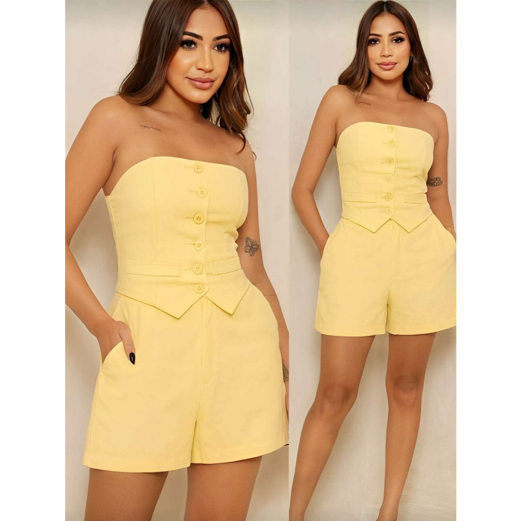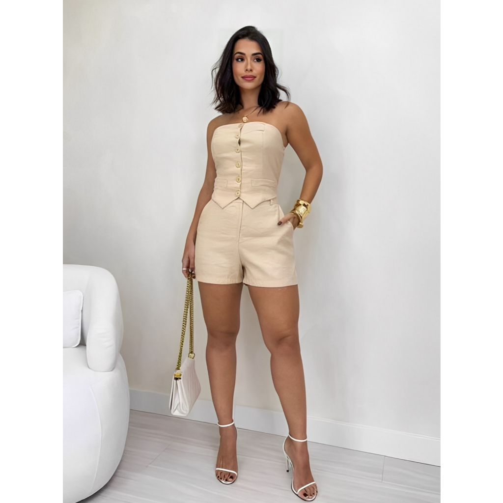 Conjunto Feminino Social Tomara Que Caia E Shorts De Alfaiataria