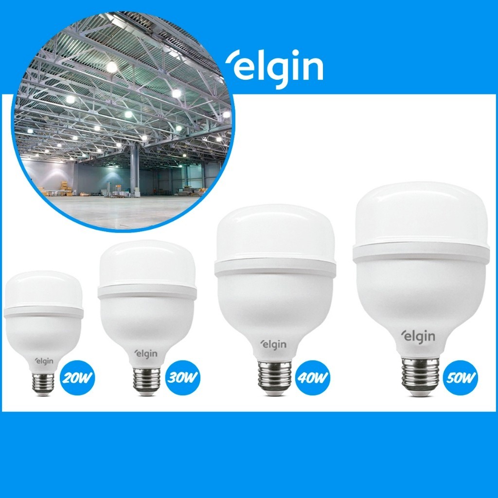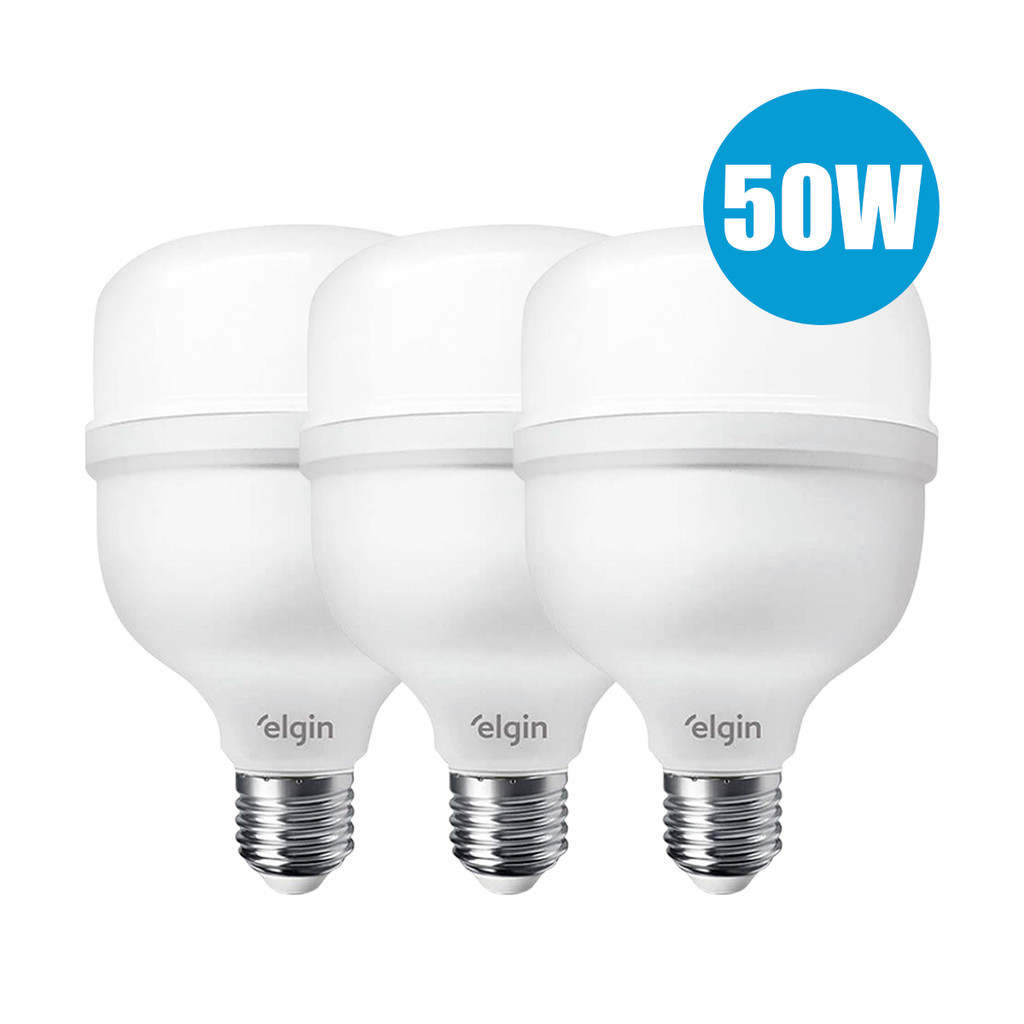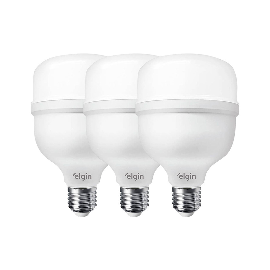 Kit 3 Lâmpadas Elgin Super Bulbo Led Alta Potência 20w 30w 40w 50w Bivolt 110/220V 6500k Luz Branco Frio