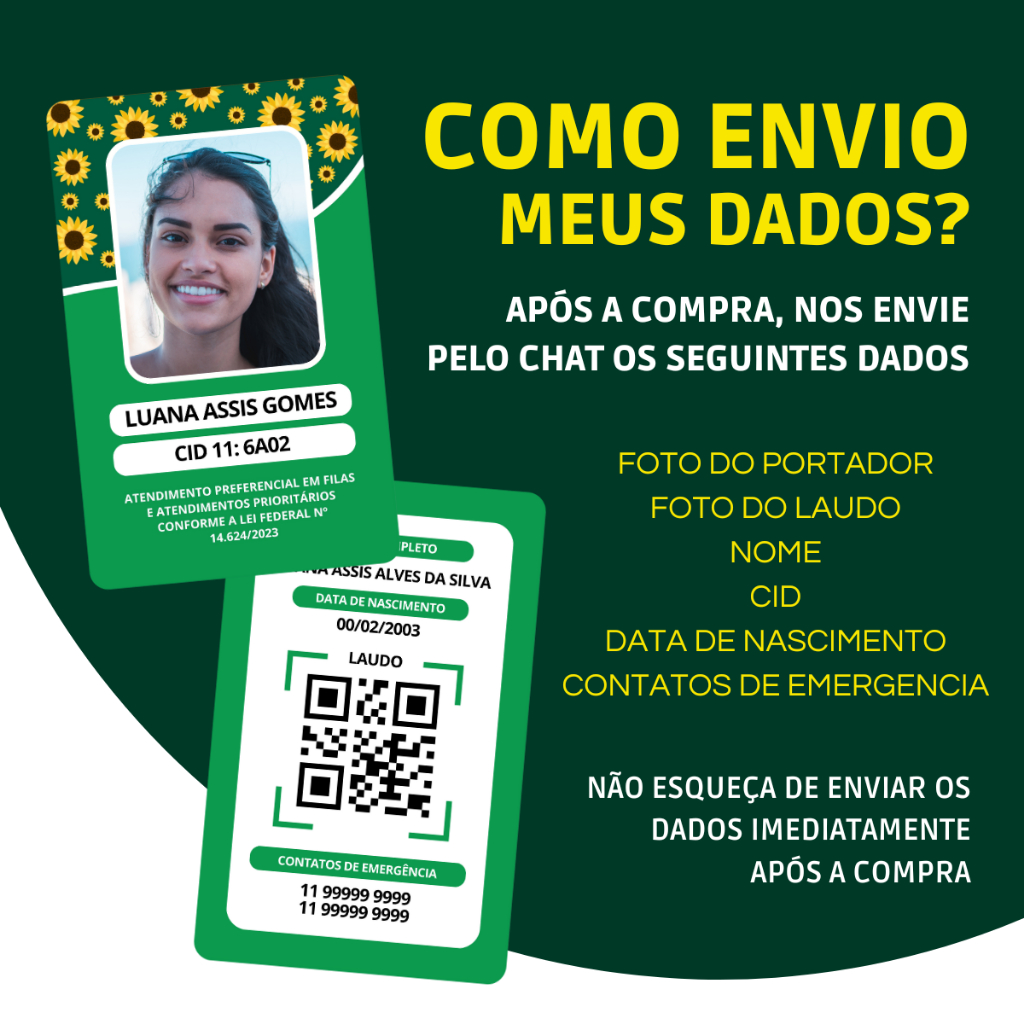 Kit Cordão + Crachá PVC Girassol com Laudo em Qrcode - Crachá Personalizado - Deficiência Oculta