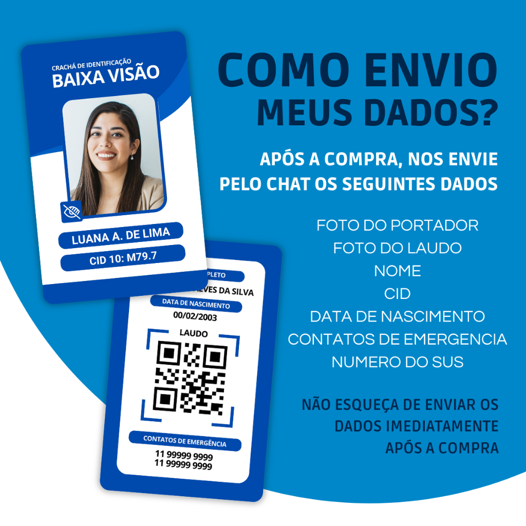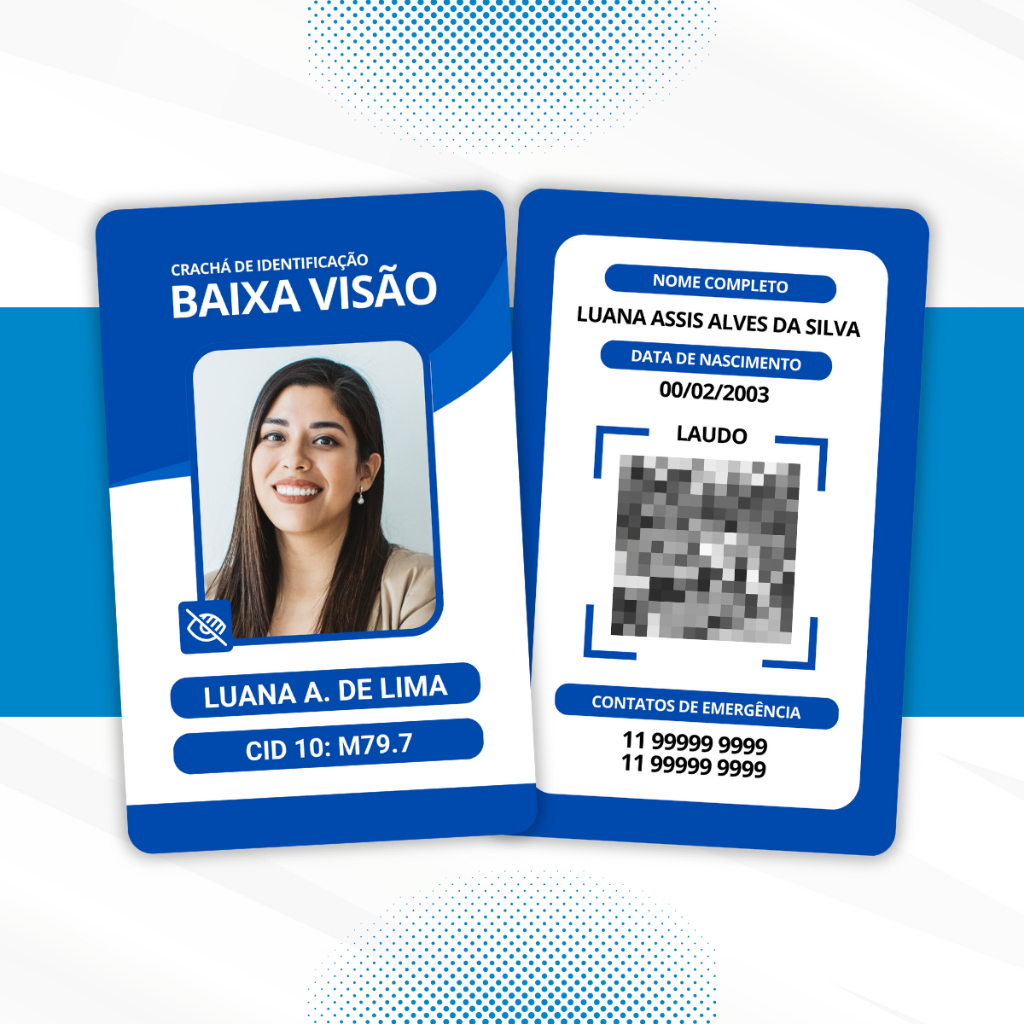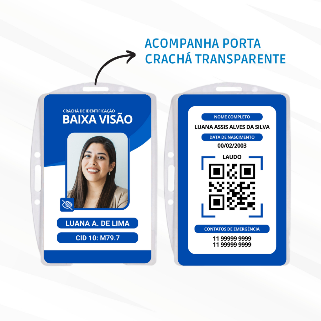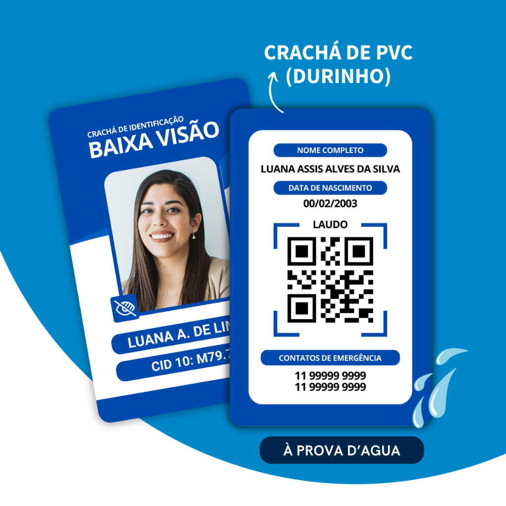 Crachá de Identificação para Pessoa com Baixa Visão PVC com Laudo em Qrcode - Crachá Personalizado