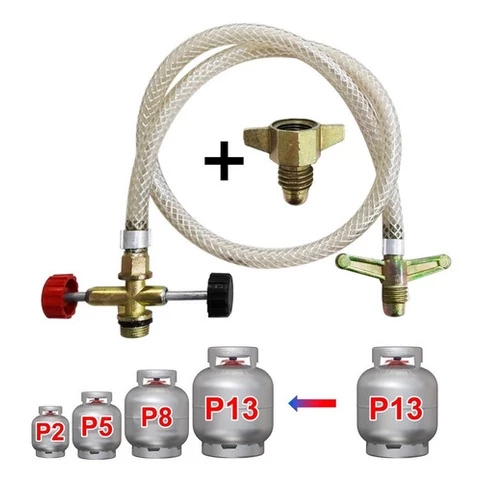 Mangueira Tranferidor de Gás Com Adaptador Para Todos botijões de Gás 13kg 8kg 5kg 2kg