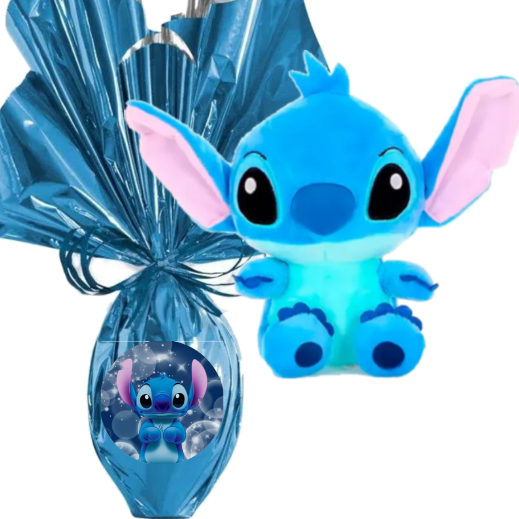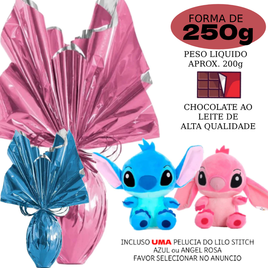 Ovo de Páscoa Infantil 250 Gramas Ao Leite + Pelúcia Lilo Stitch Fofas 25cm Presente + Brinde