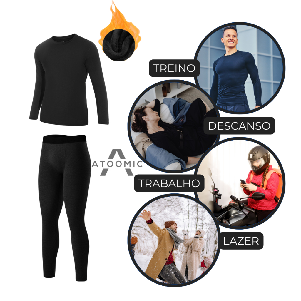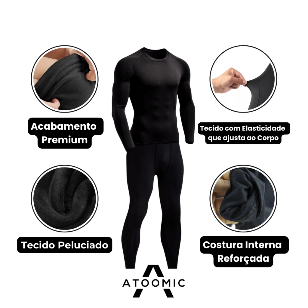 Kit Calça e Camisa Peluciada Térmica Segunda Pele Tecido Flanelado Ideal Para Inverno