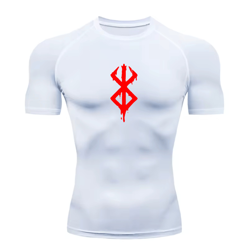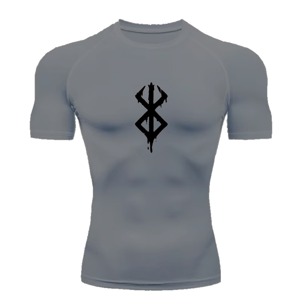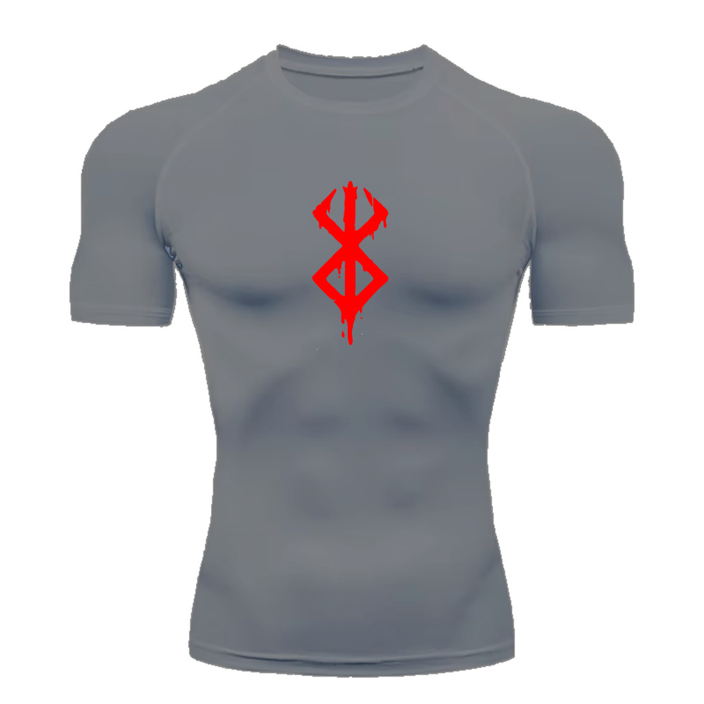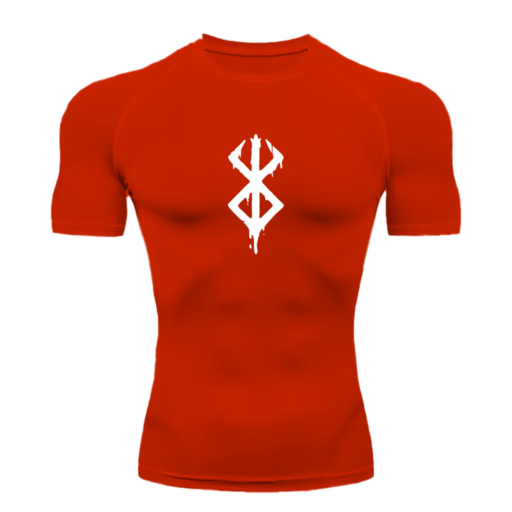 Camisa Compressão Proteção Uv 50+ Estampada Tecido Gelado Segunda Pele Manga Curta Símbolo Berserk
