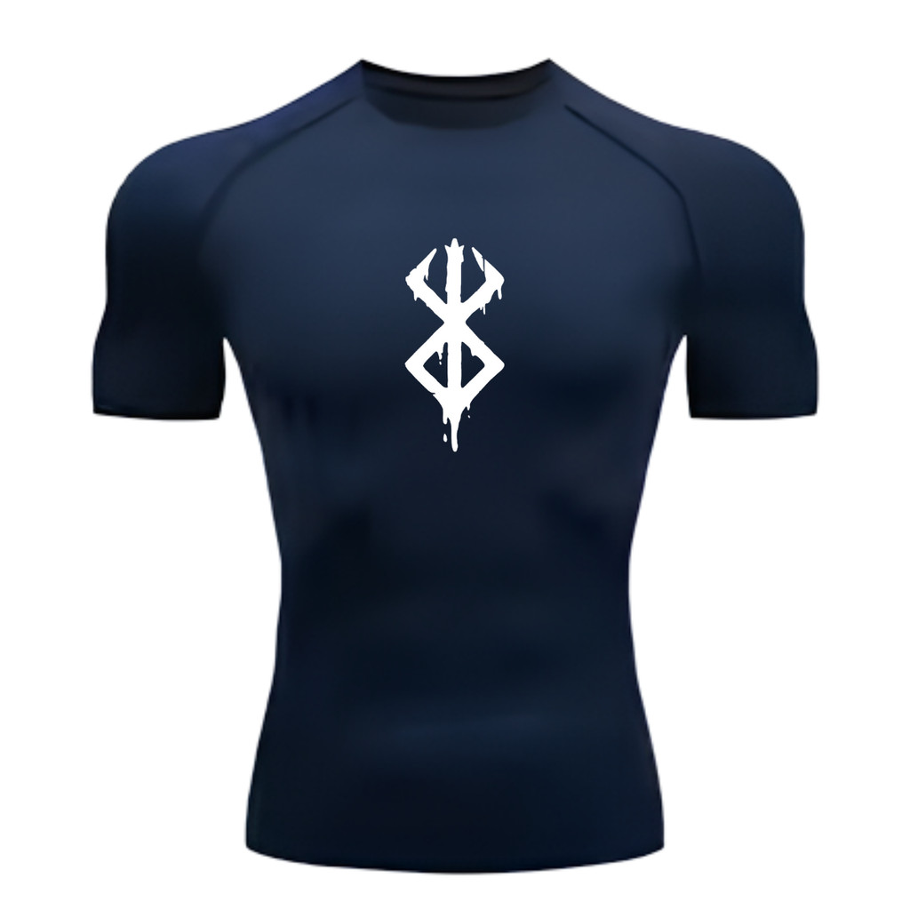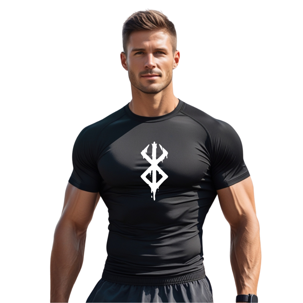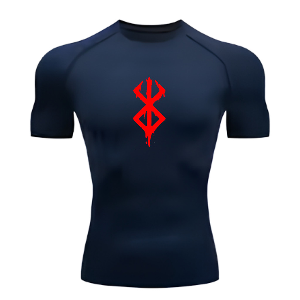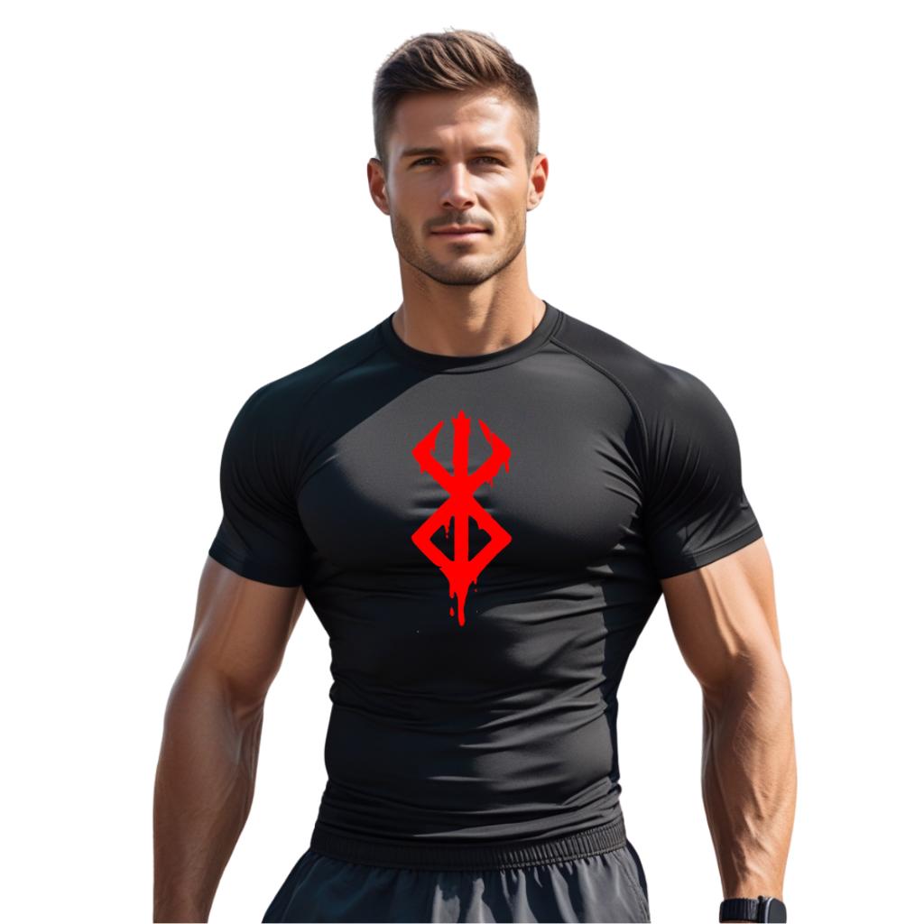 Camisa Compressão Proteção Uv 50+ Estampada Tecido Gelado Segunda Pele Manga Curta Símbolo Berserk