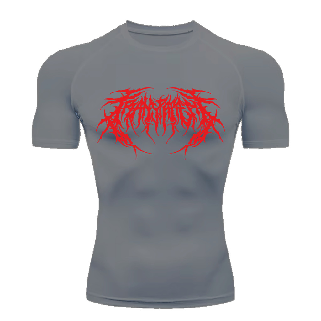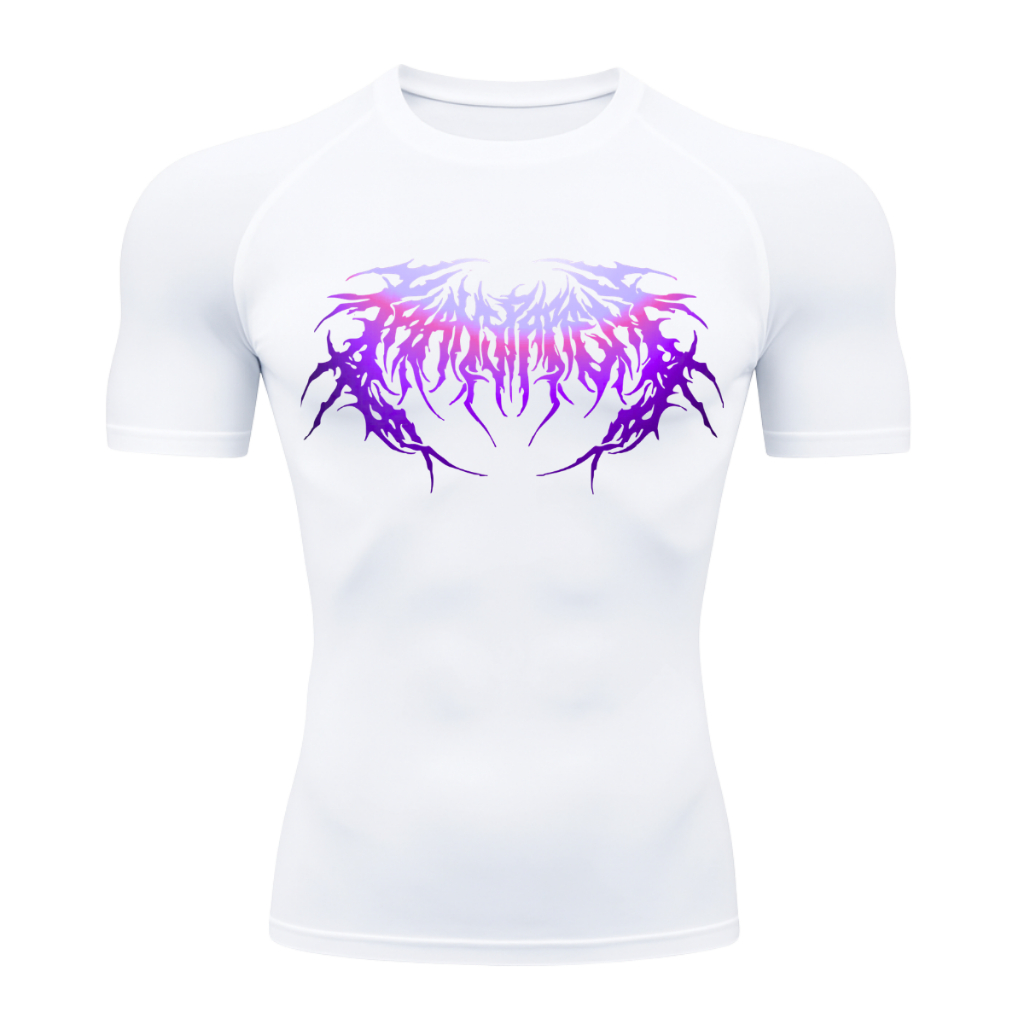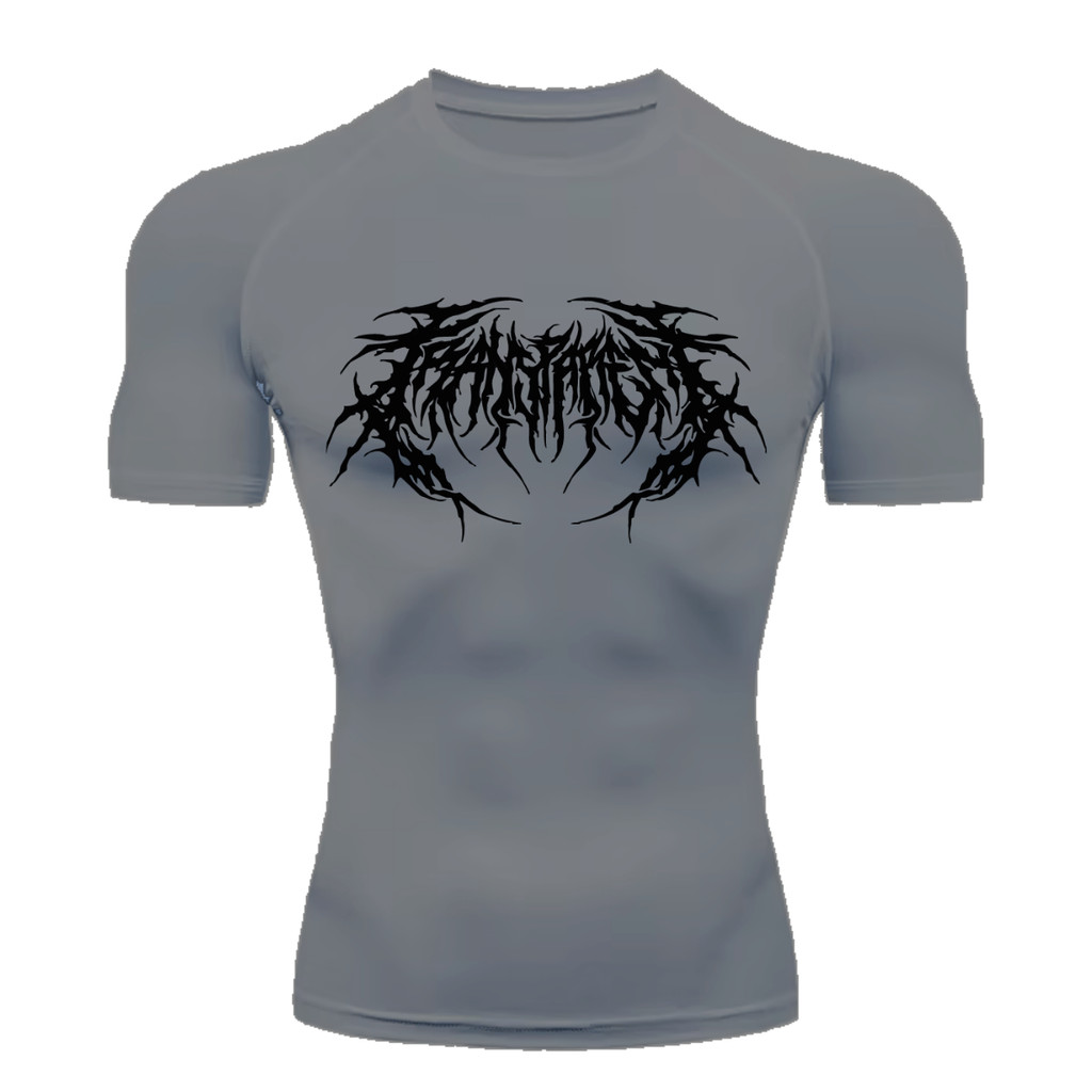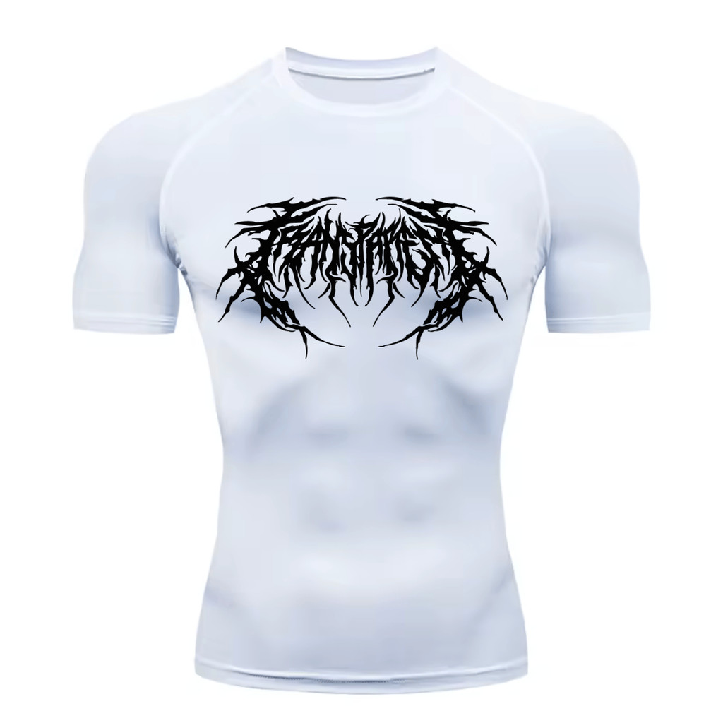 Camiseta Compressão Proteção Uv 50+ Tecido Gelado Segunda Pele Manga Curta Cyber Tribal Rash Guard