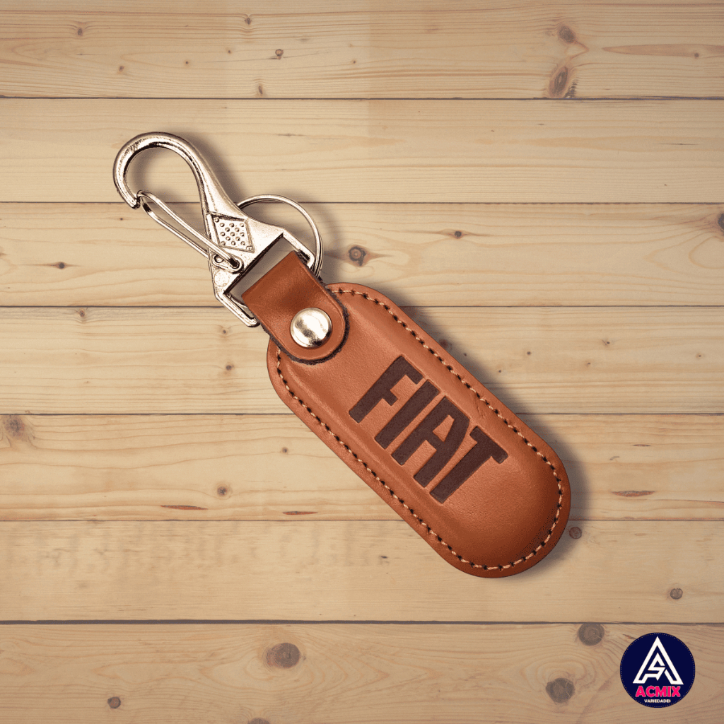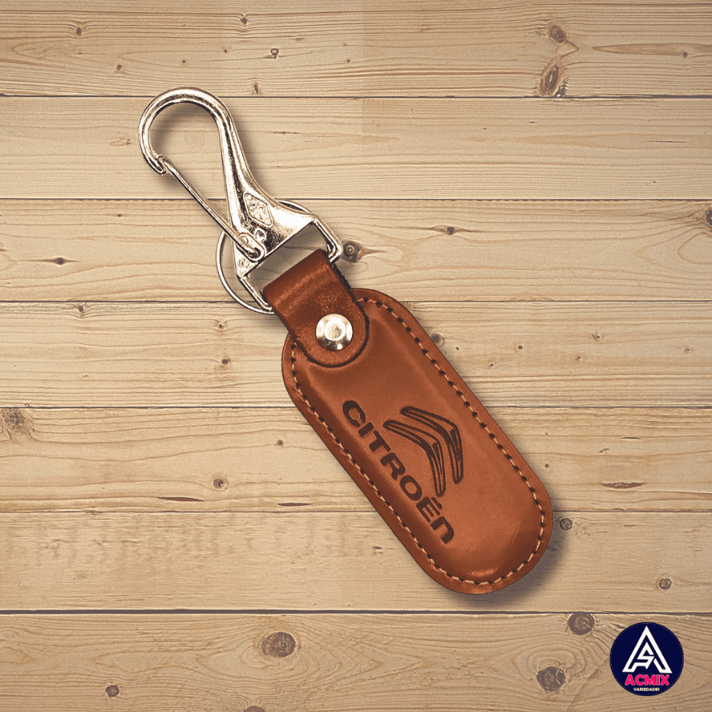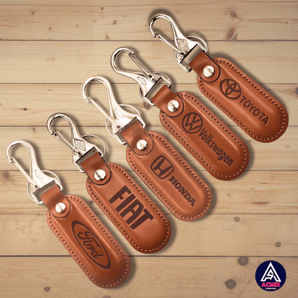 Chaveiros Automotivo Carro de Couro Marrom Sintético com Mosquetão