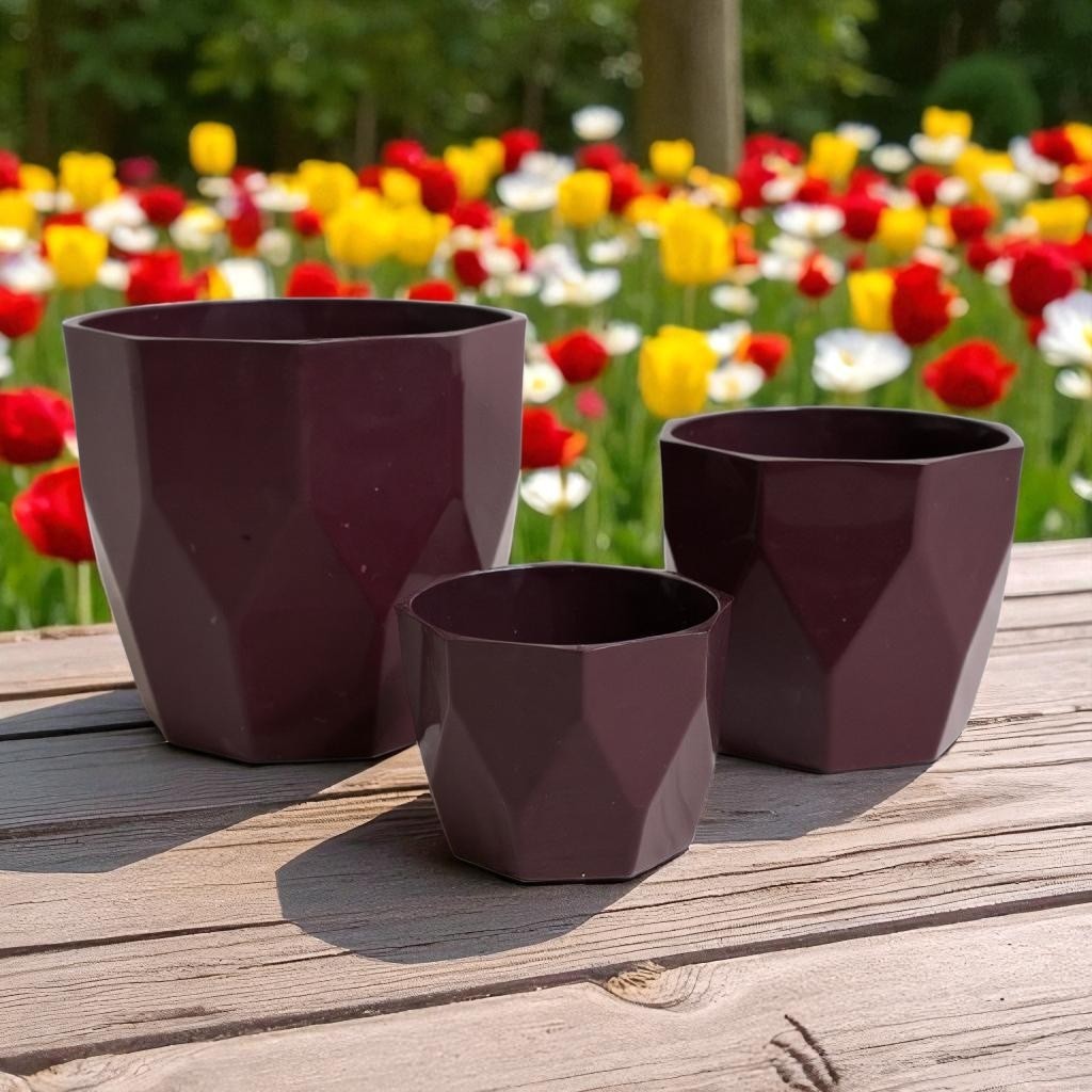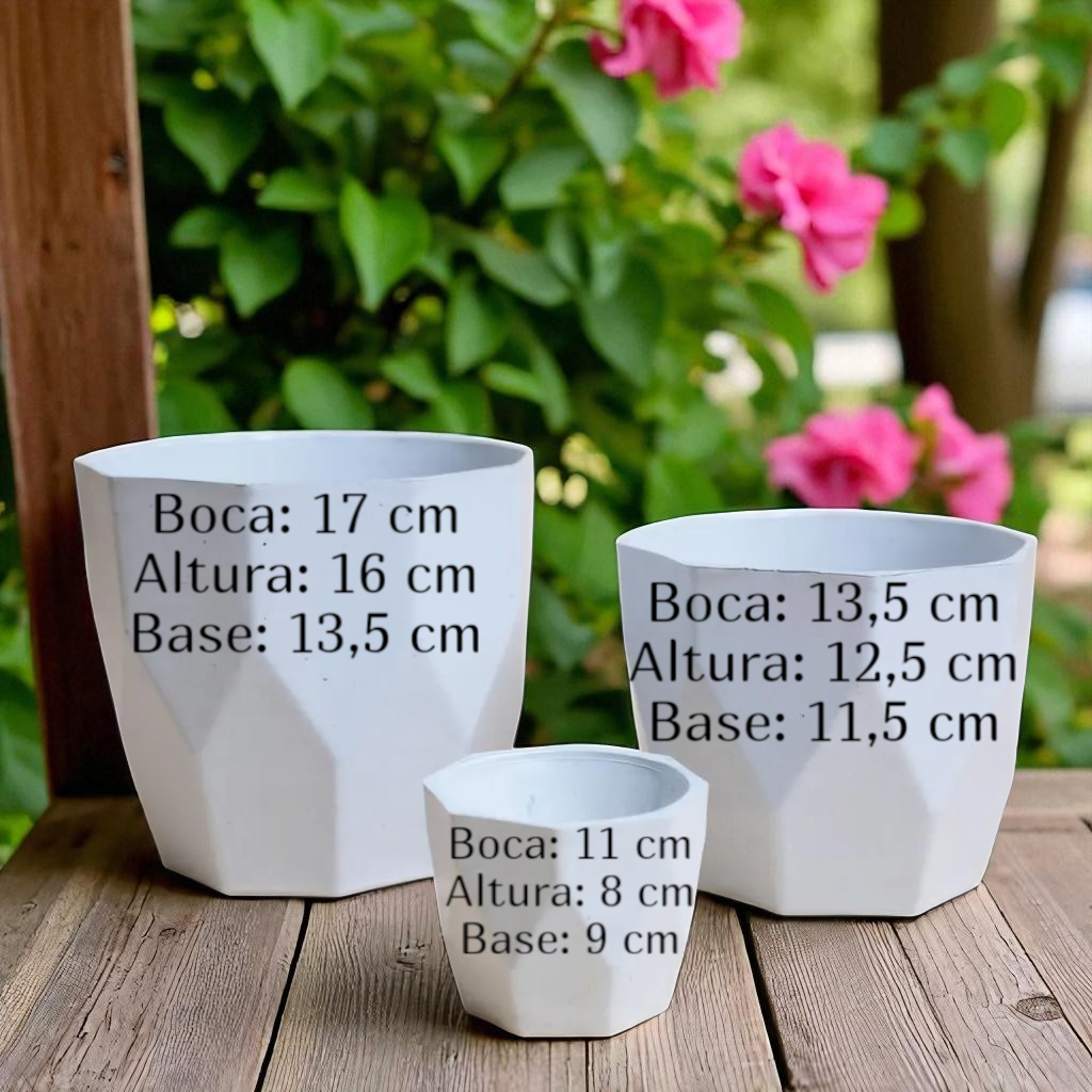 Kit 03 Vasos Decorativos Plantas Flores Suculentas Cactos Cachepot Injetado Luxo Mesas Salas Enfeite