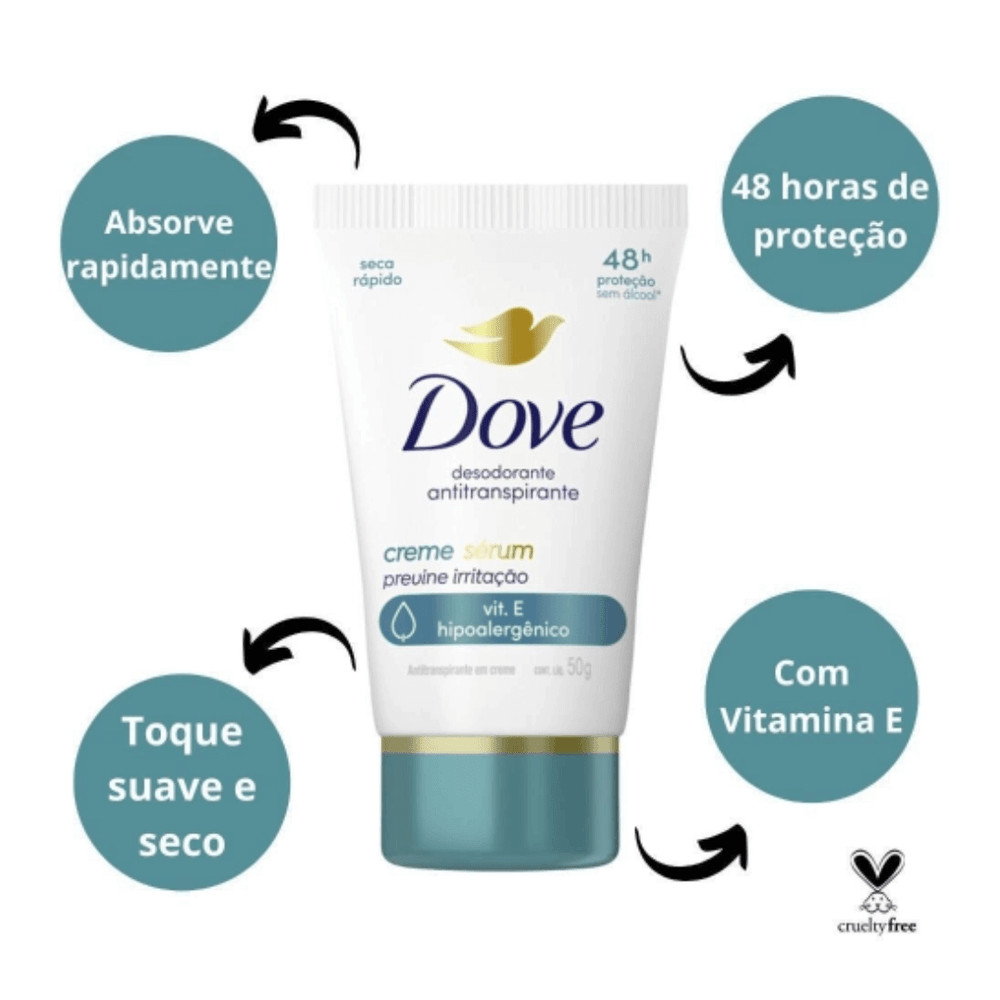 Desodorante Dove Creme Sérum Previne Irritação e Hipoalergênico 50g
