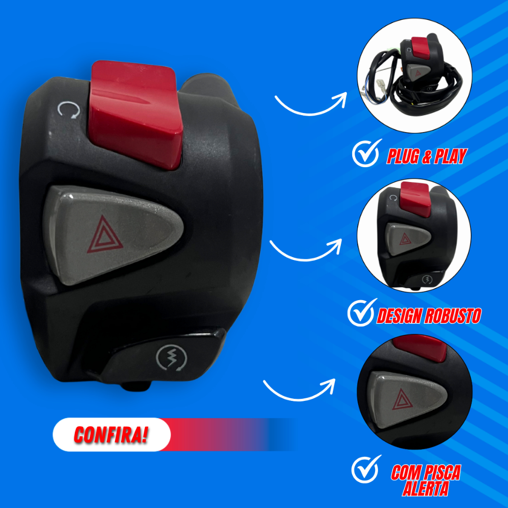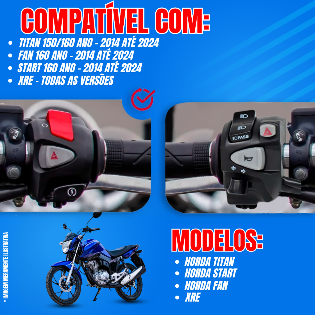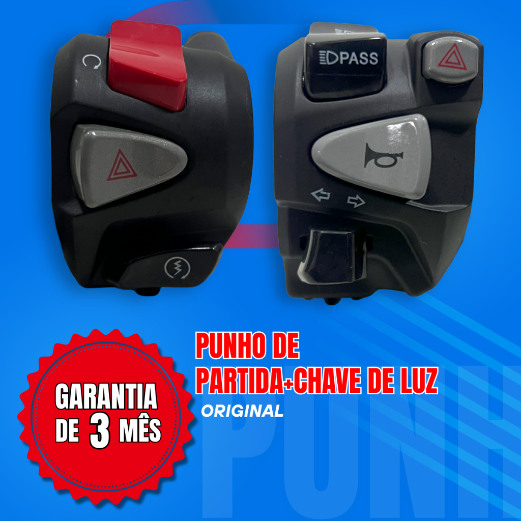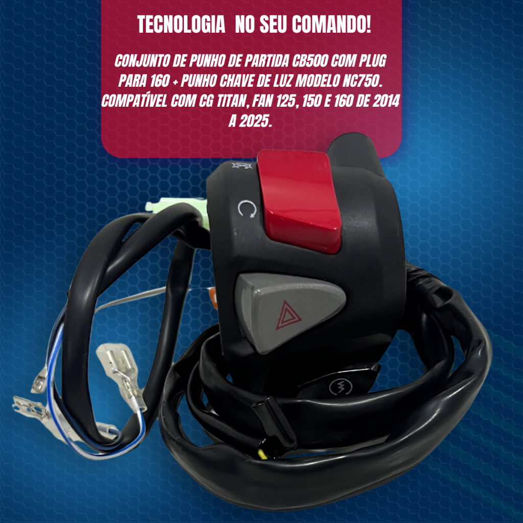 Kit Punho De Partida Cb 500 + Punho Chave de Luz NC750 Com Lampejador Pisca Alerta Cg Titan Fan Cb Start 150 Plug 160