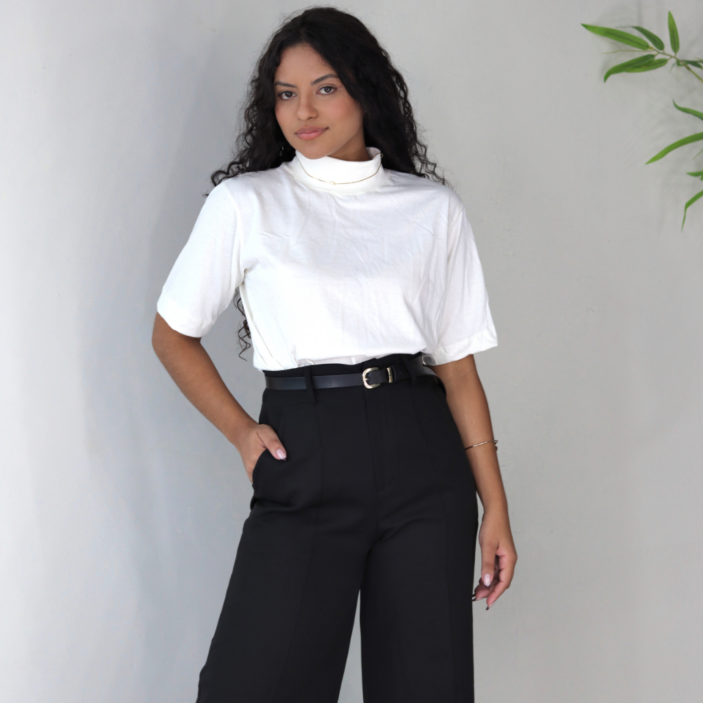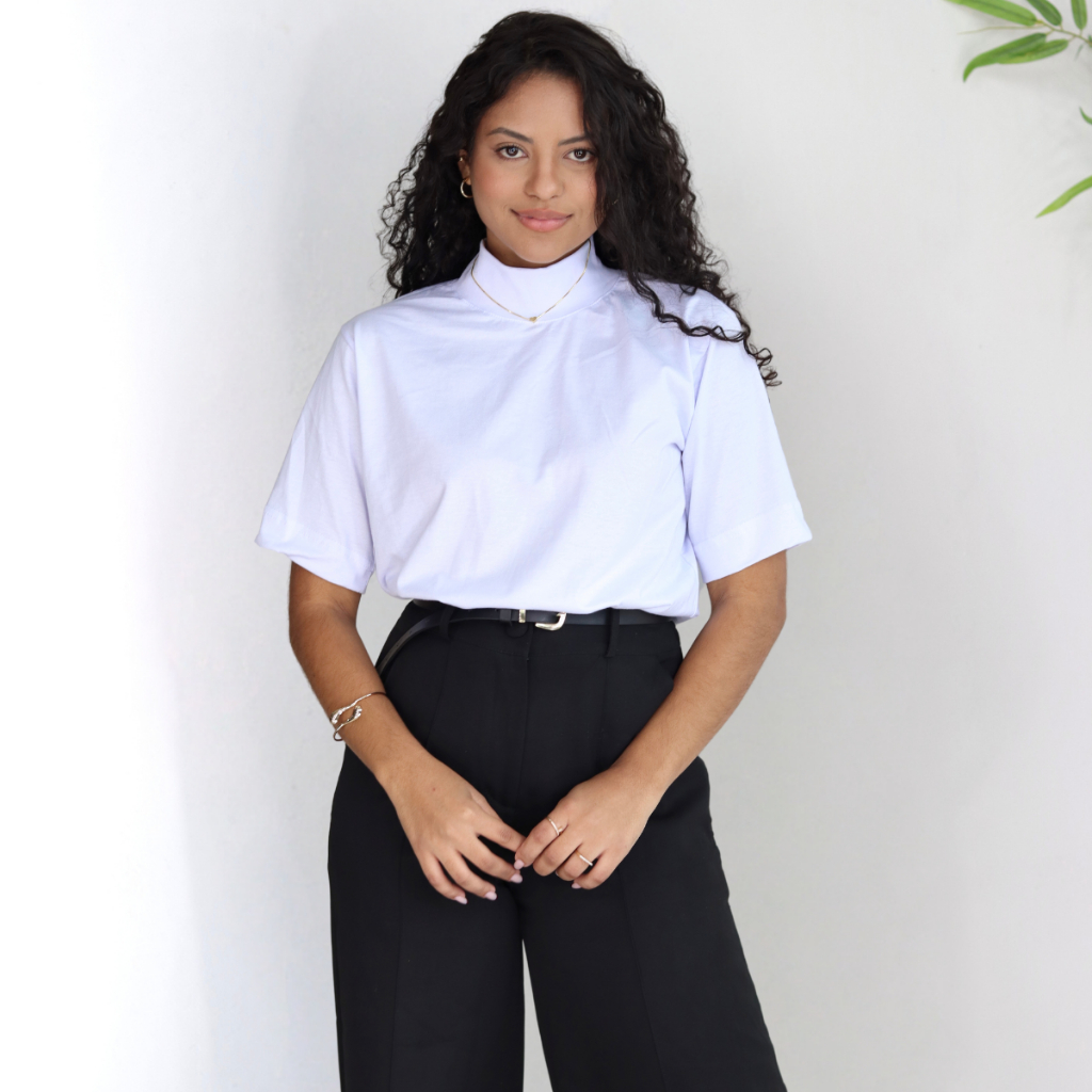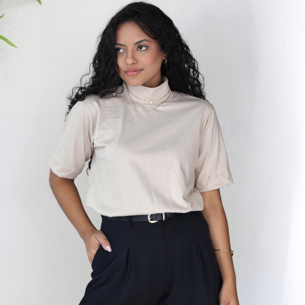 T-Shirt Feminina Camiseta Gola Alta 100% Algodão Básica Lisa Várias Cores