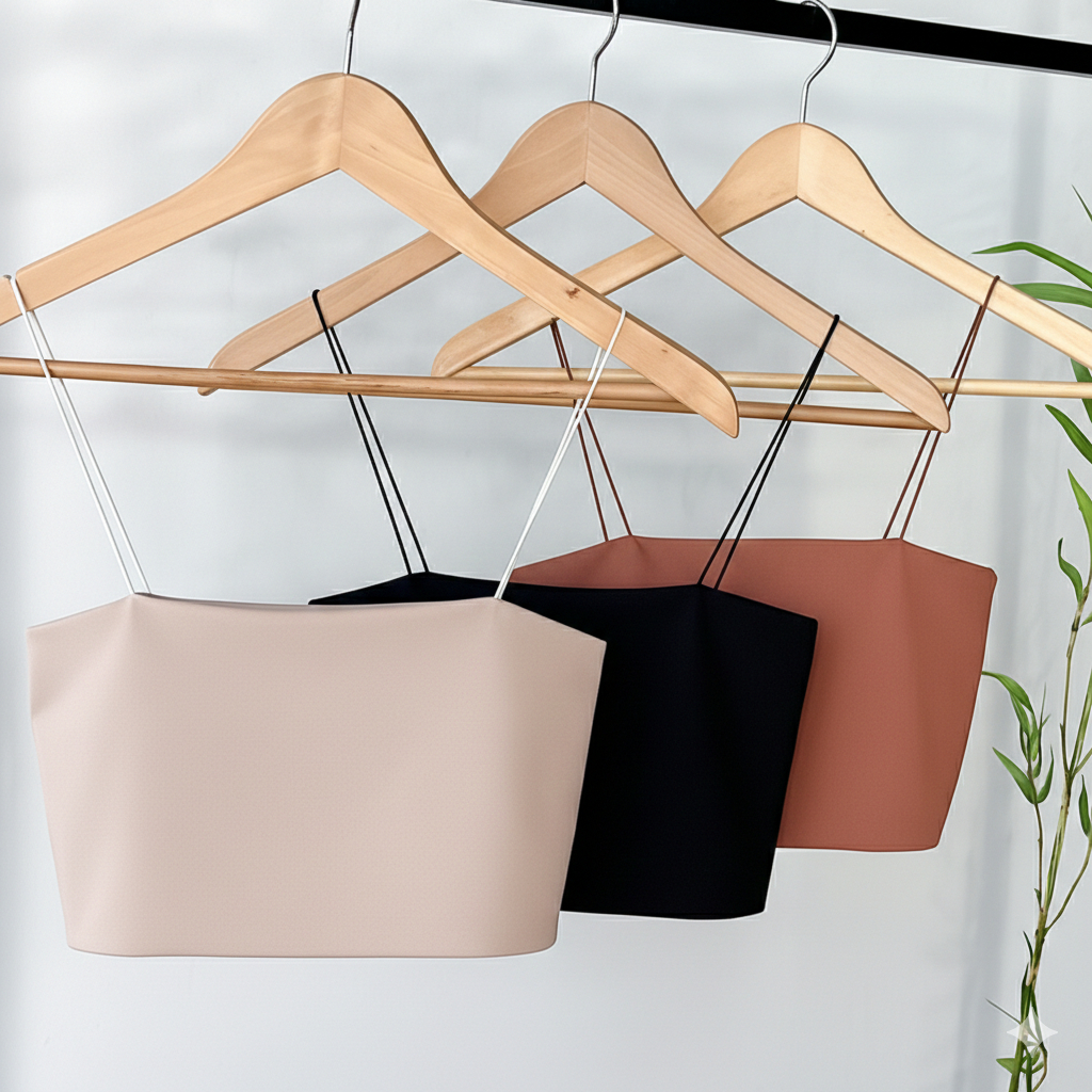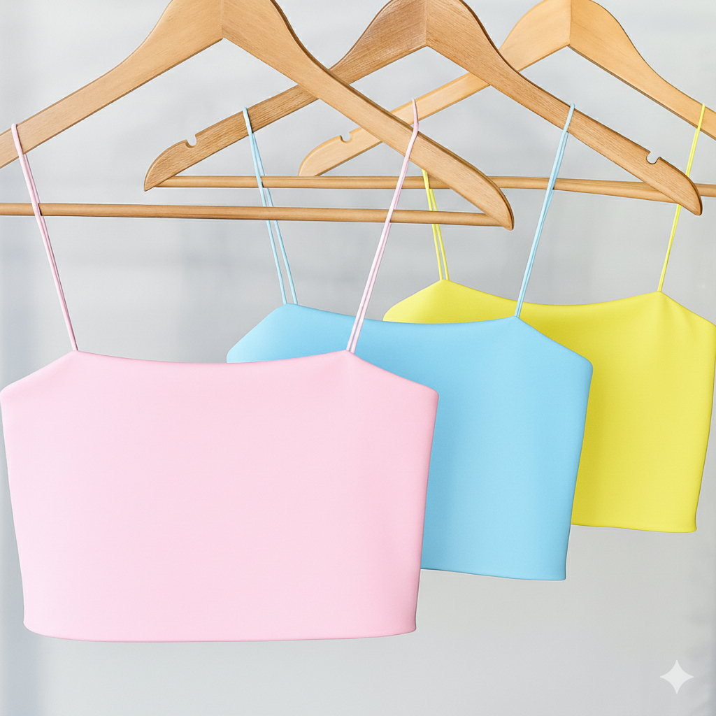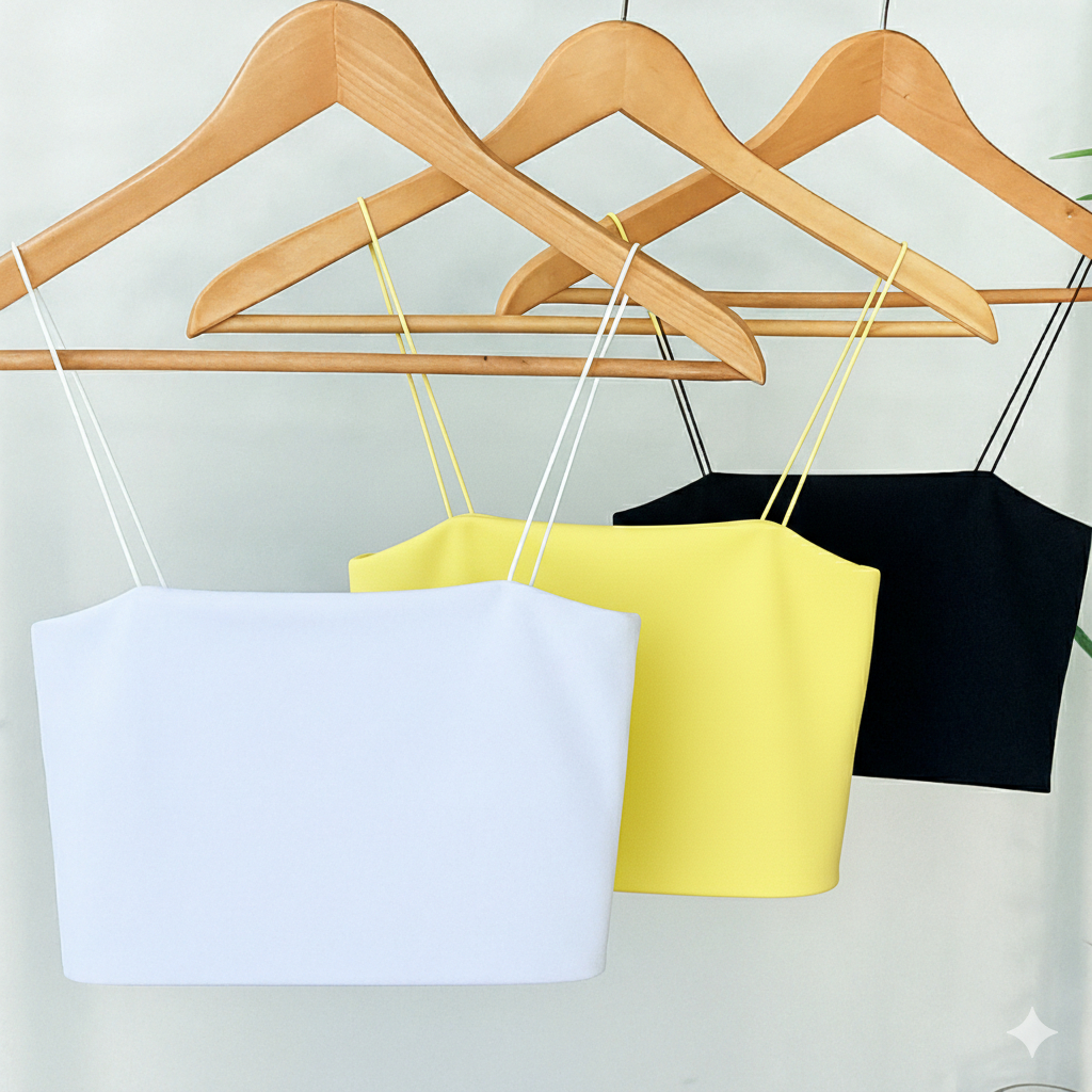 Kit 3 Cropped Feminino Top Faixa Alças Elásticos Finas Forro Duplo Suplex