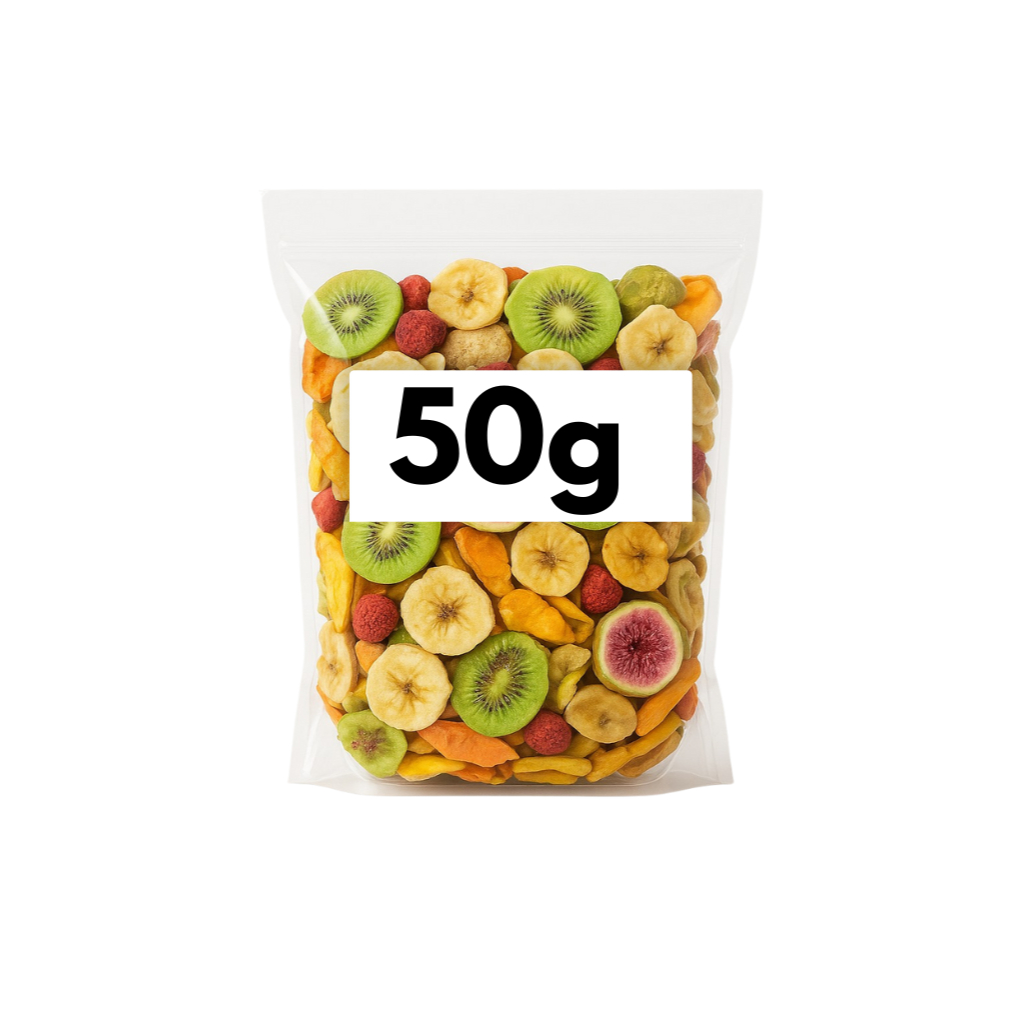 Mix Frutas Tropicais 50g -(7 Frutas): Chips de Banana, Jaca, Mamão, Kiwi, Maçã, Morango e Figo