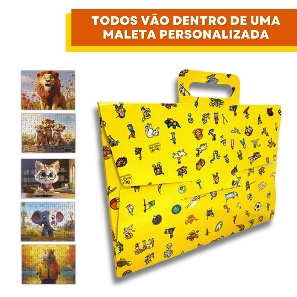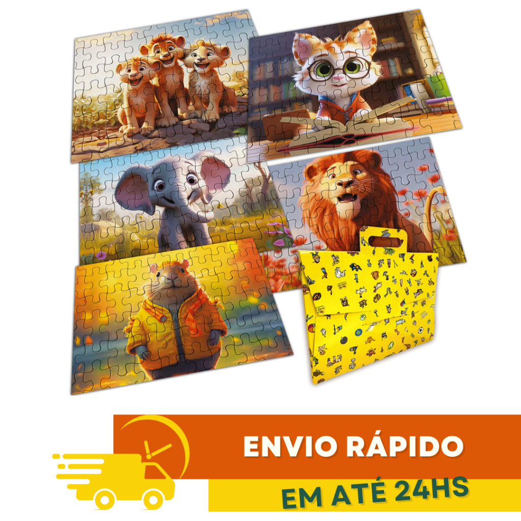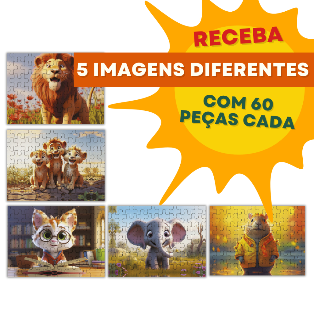 Kit 5 Quebra Cabeças - 60 Peças Cada - Mundo Animal Vol 5 - Brinquedo Infantil Educativo