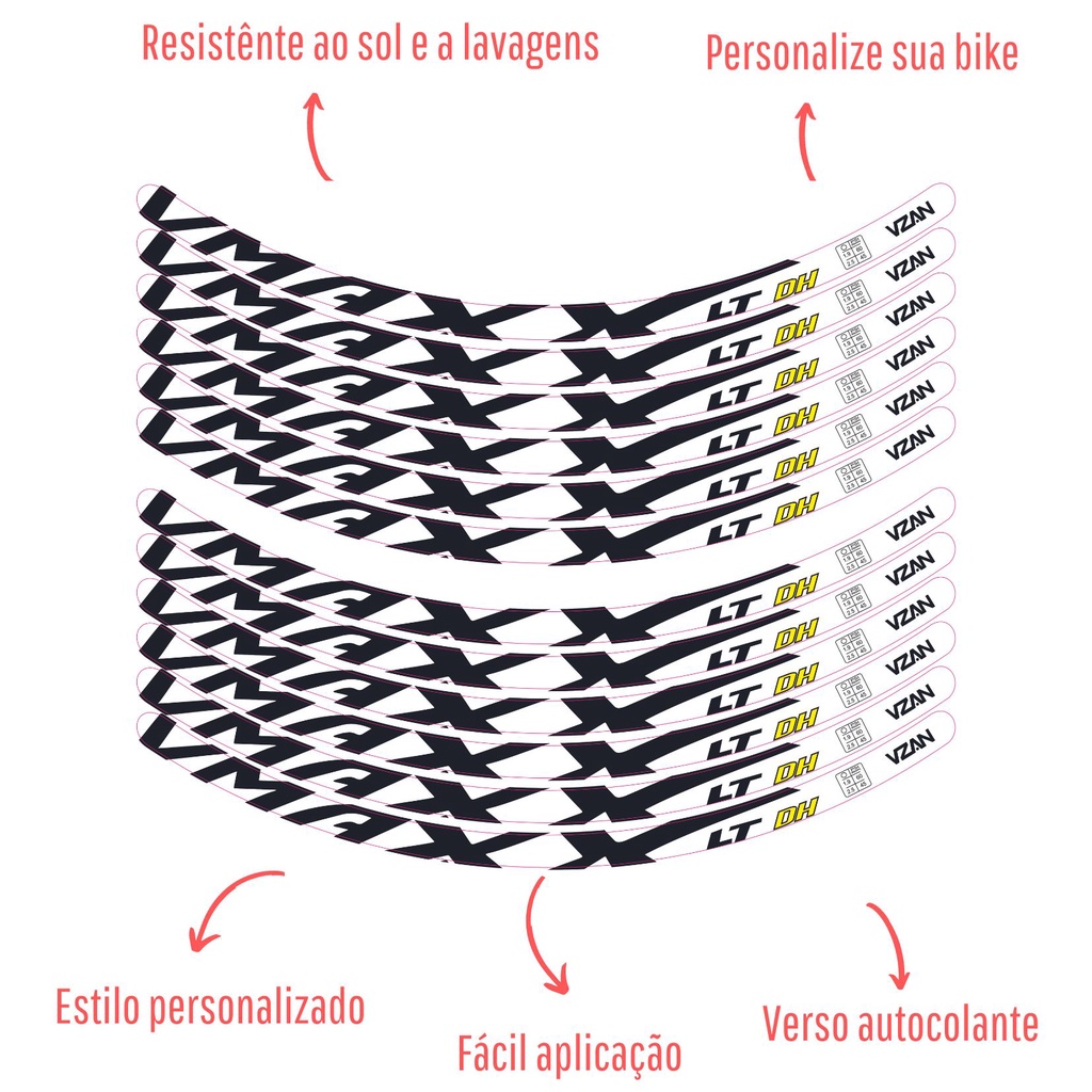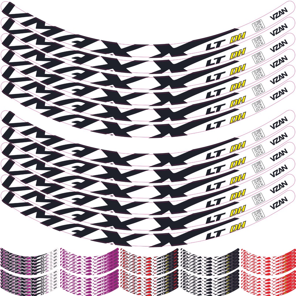 12 Adesivos de bicicleta Vmaxx Aro 24 kit para duas rodas Branco, preto, vermelho, roxo