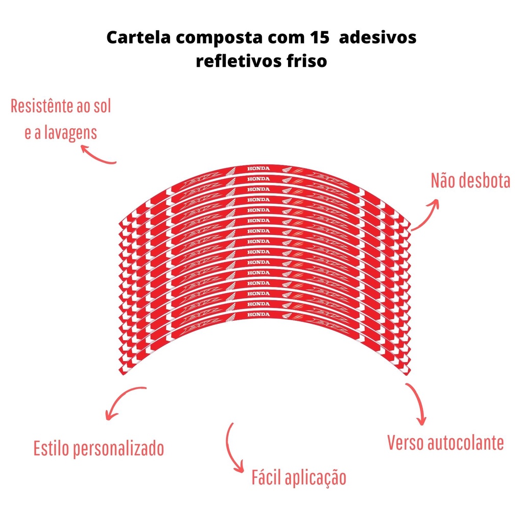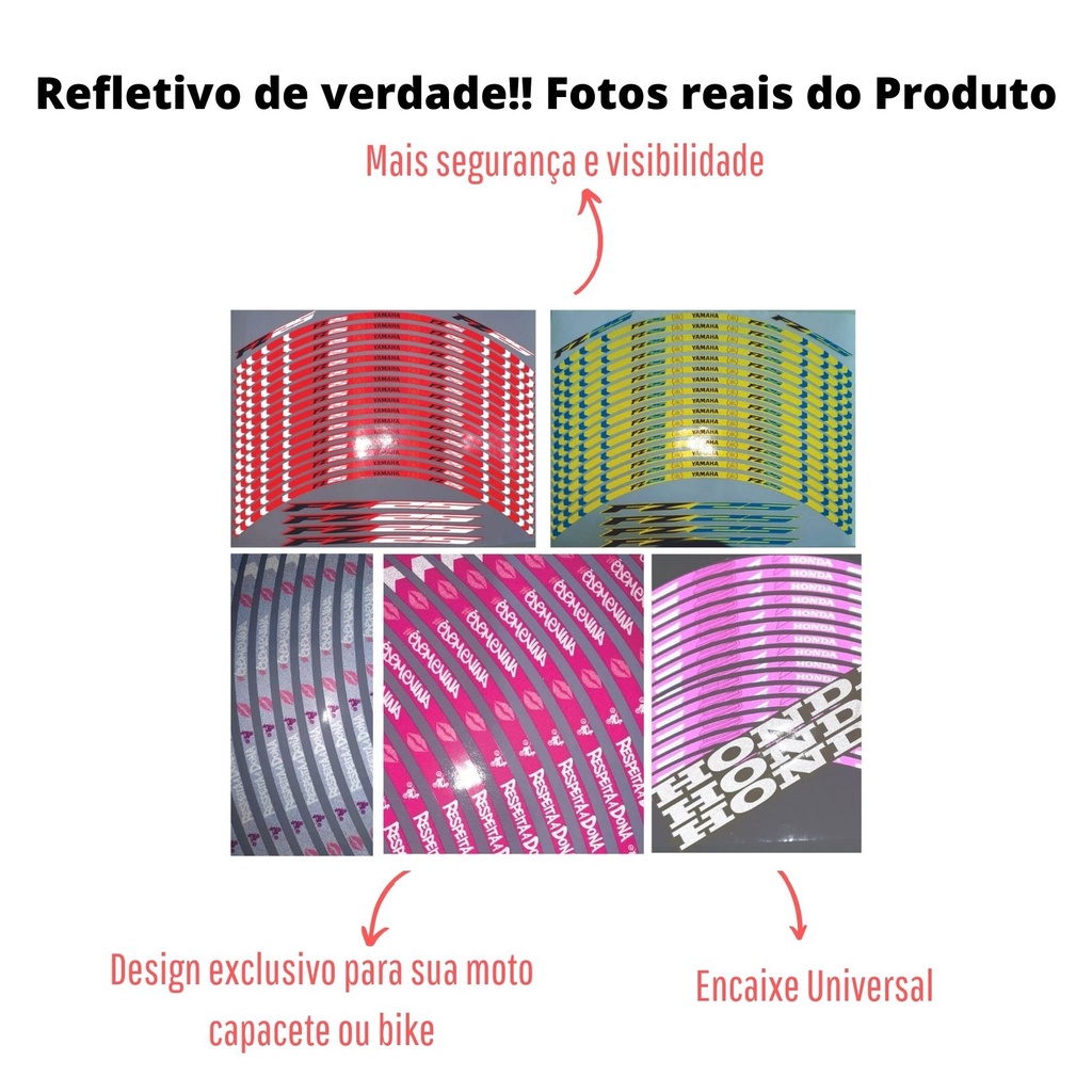 Adesivo refletivo de roda moto Honda Biz Rosa, vermeho, Azul e Amarelo