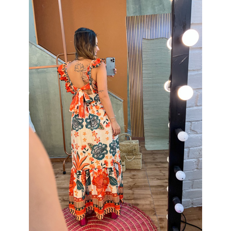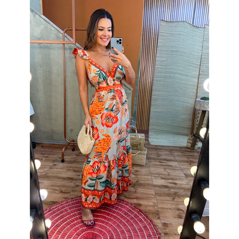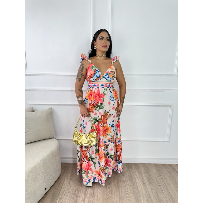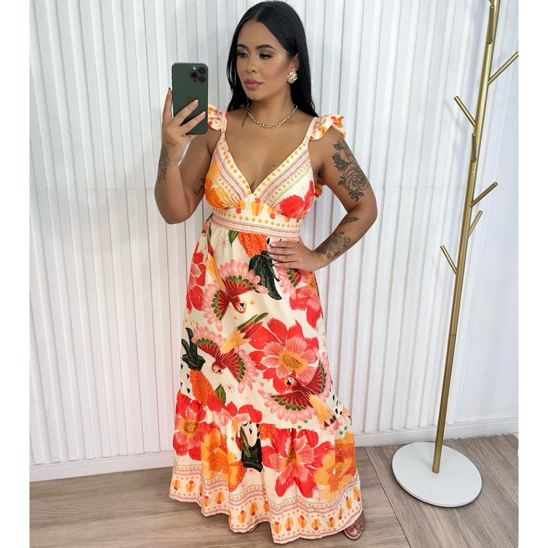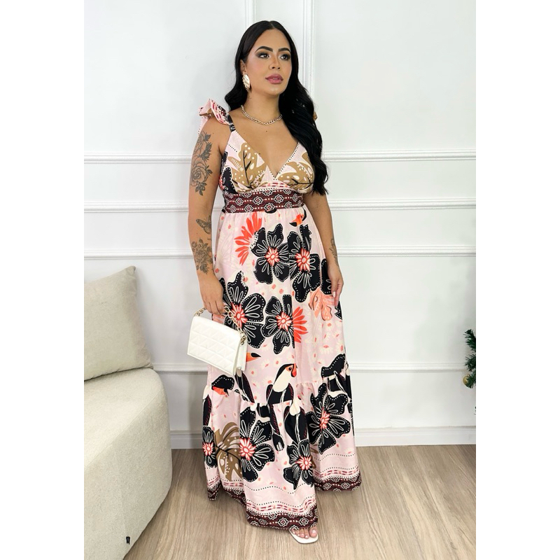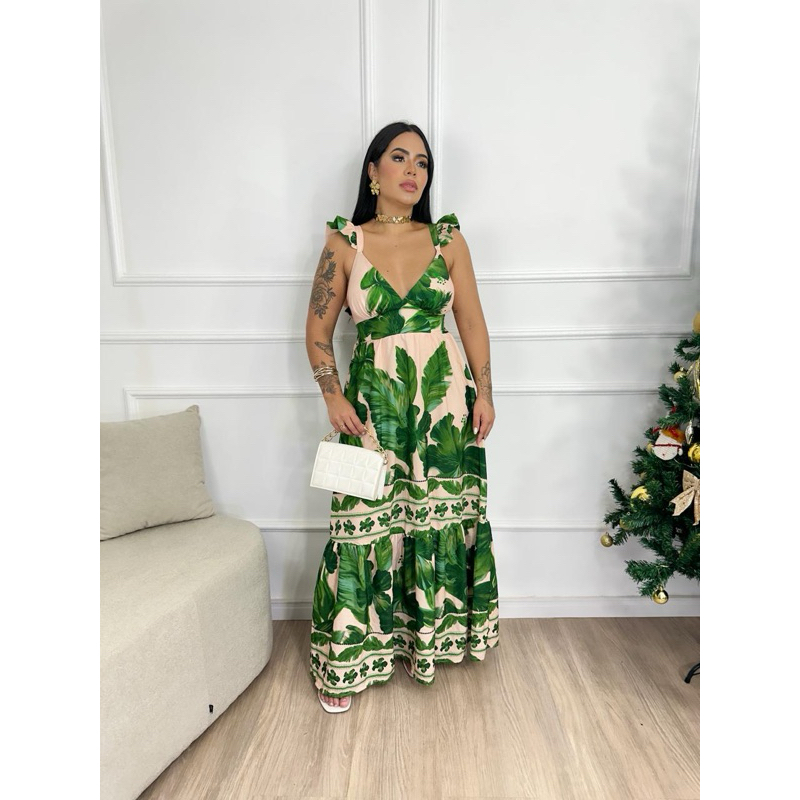 Vestido Longo inspiração em estampas tropicais