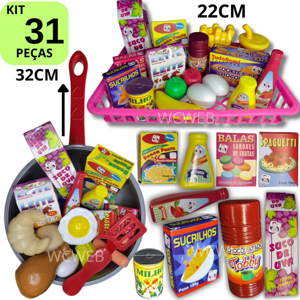 Kit Brinquedos Menina Menino 31 Pç Comidinha Infantil Mercadinho Comidas Panelinha Brinquedo Cozinha