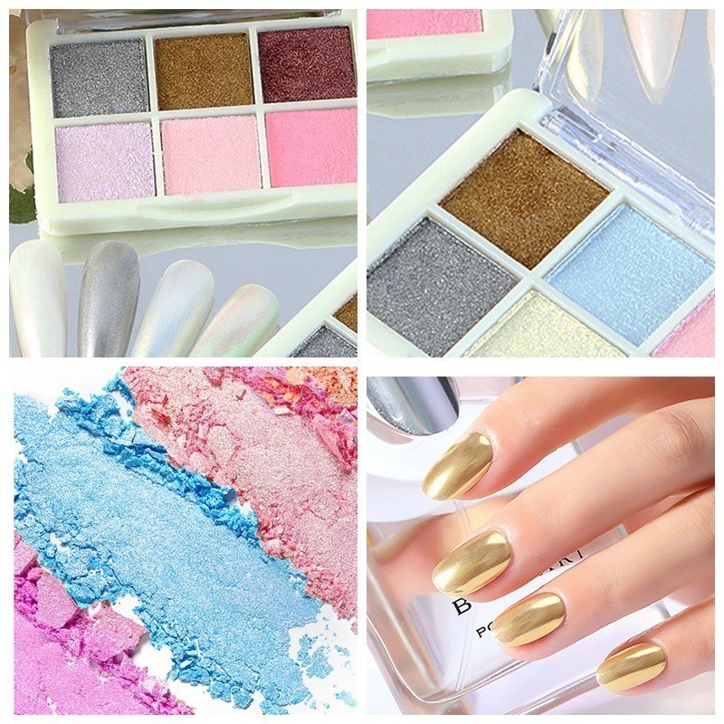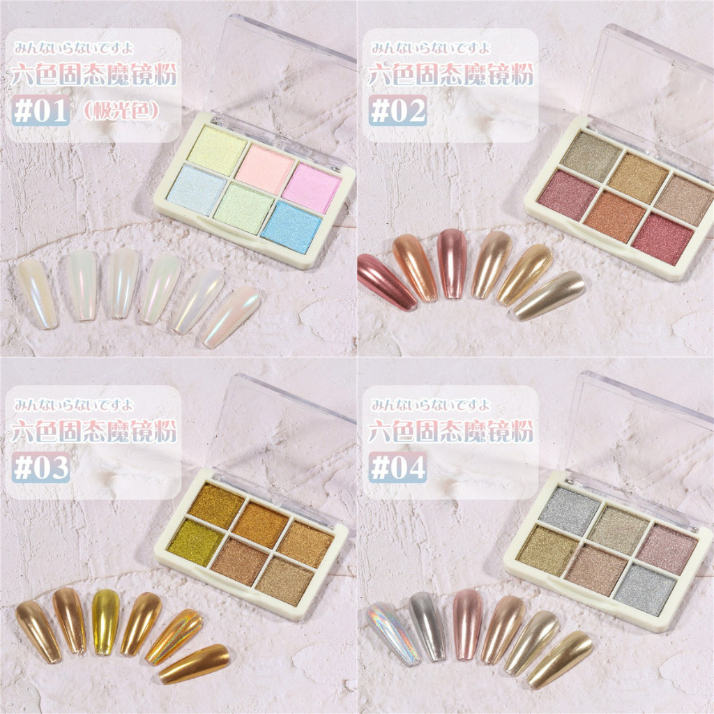 Caixinha com 6 Cores Aurora Solid Mirror Unhas Pó Glitter Dust Metal Effect Unhas UV Gel