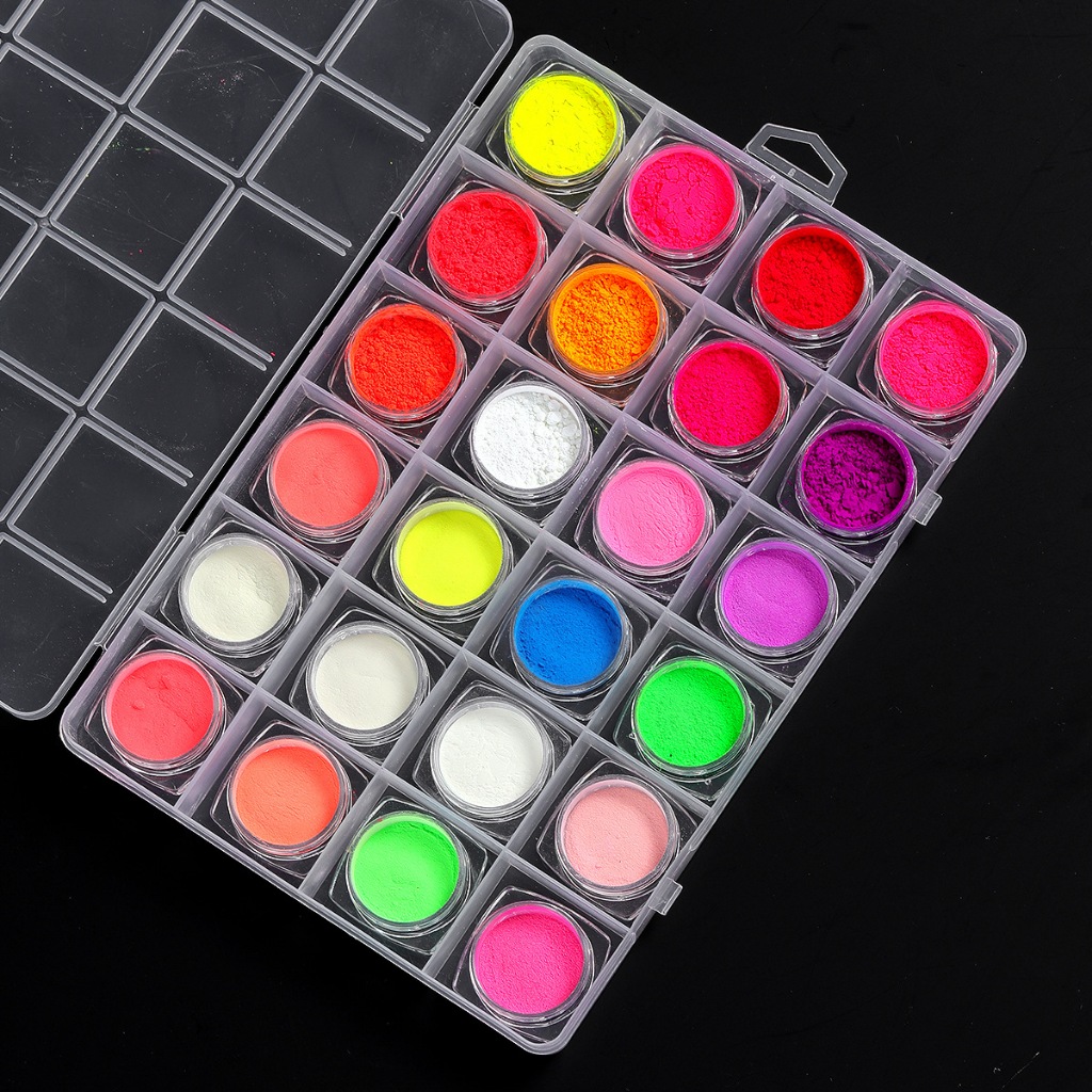 Caixa 24 Cores Pó Neon em Torre Para Decoração de Unha Maquiagem