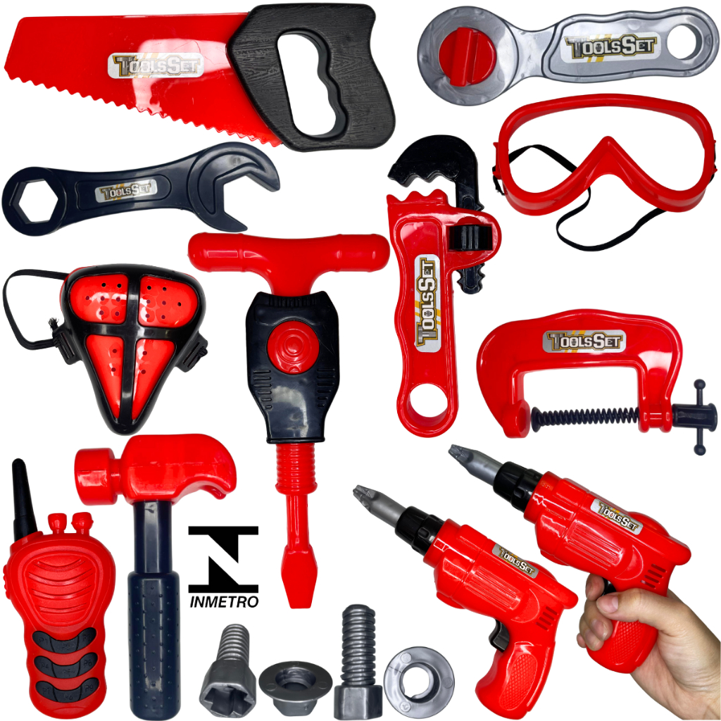 Kit Ferramentas Infantil Ferramentas de Brinquedo Mini Construtor de Brinquedo Faz de Conta 14 peças