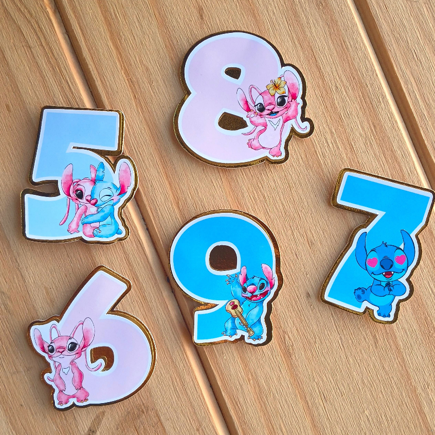 Apliques de Número Temático 5CM 3D Stitch/Angel Personalizado para Festas Aniversário lembrancinha