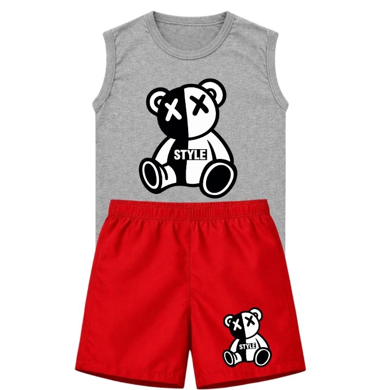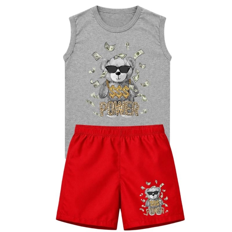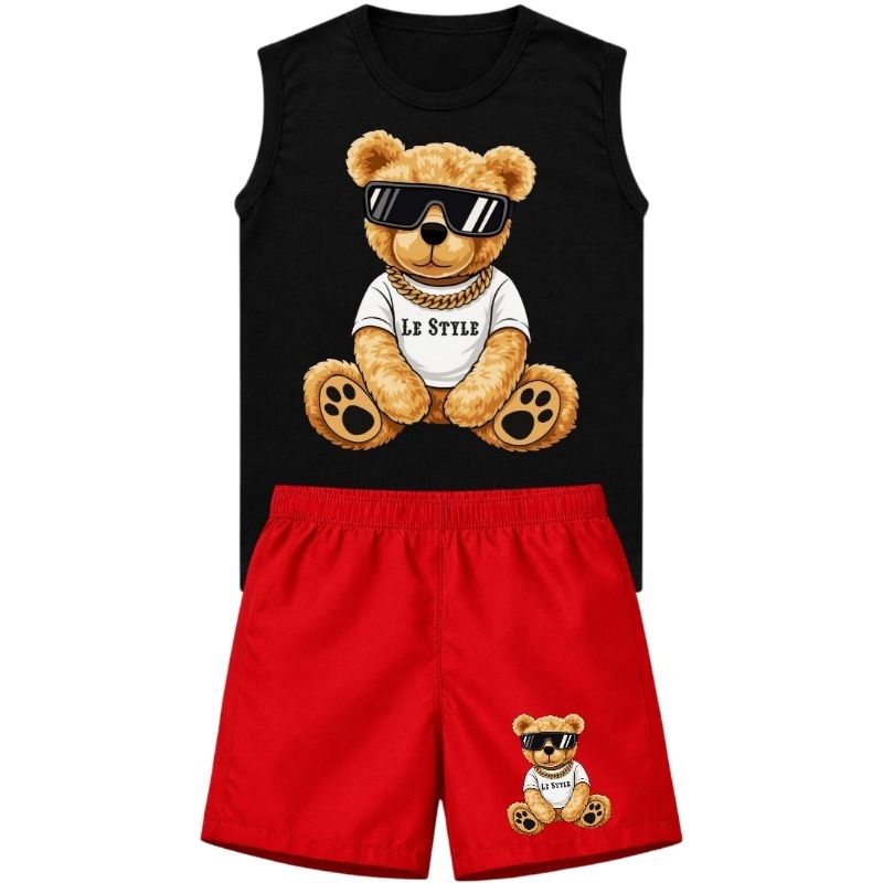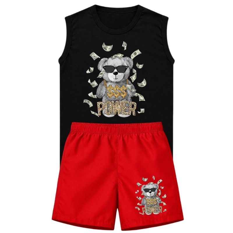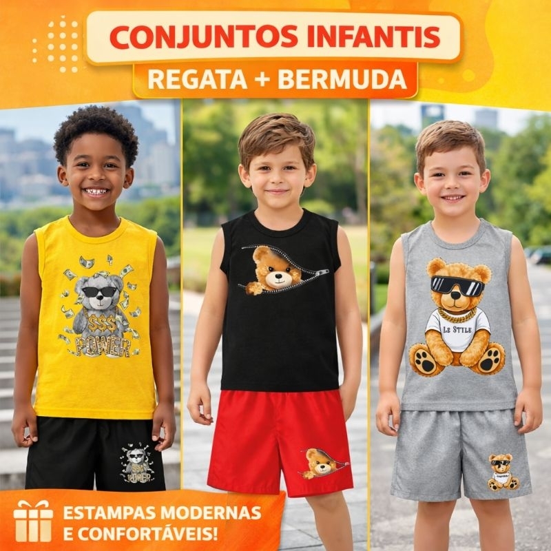 Conjunto Infantil Menino Regata e Bermuda Estampa Urso Look Casual Confortável