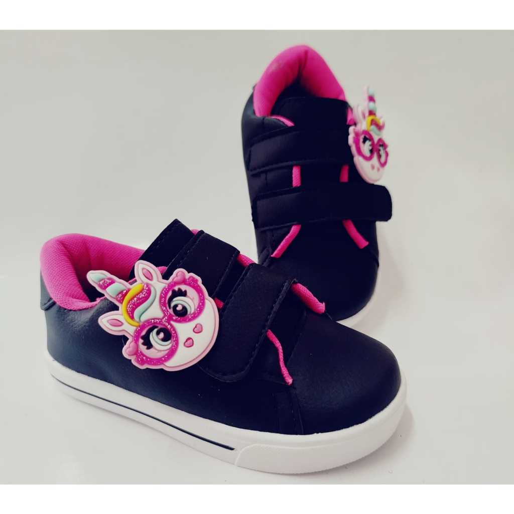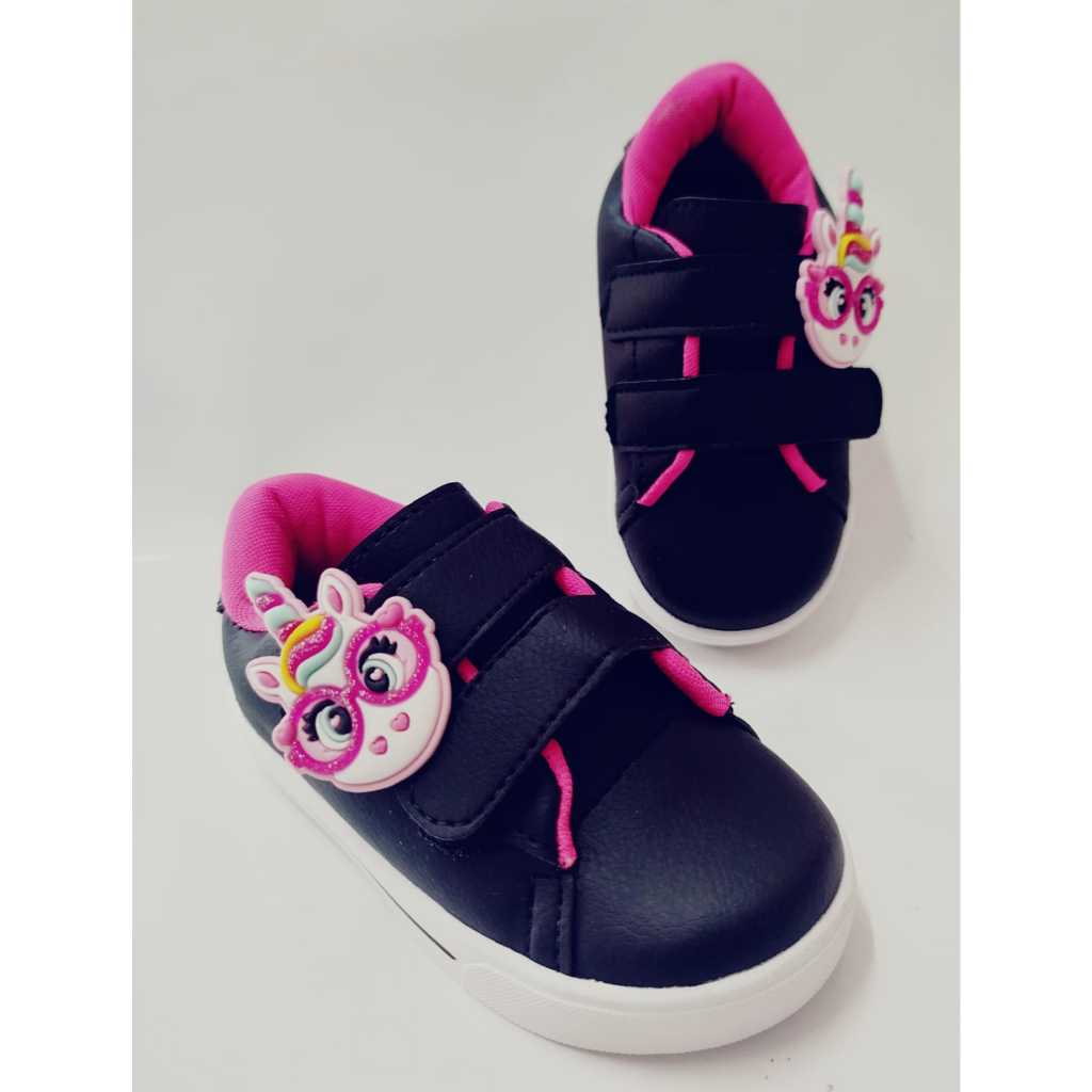 Tênis Menina Infantil Unicórnio Estiloso Preto Casual Volta As Aulas Confortável