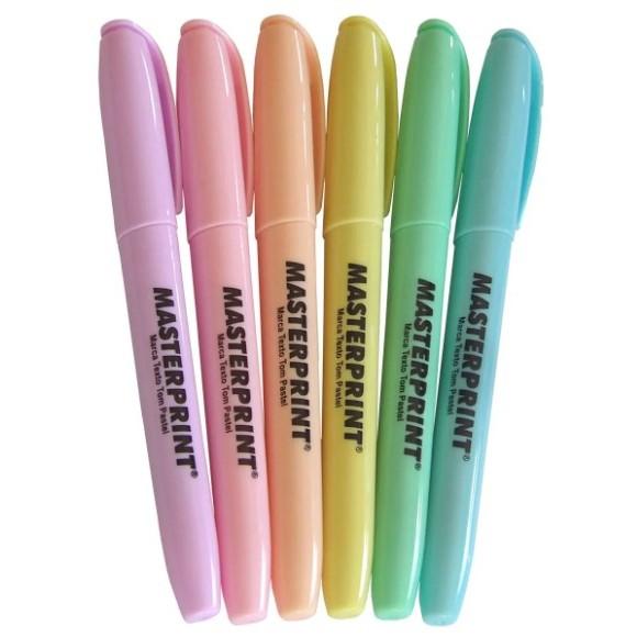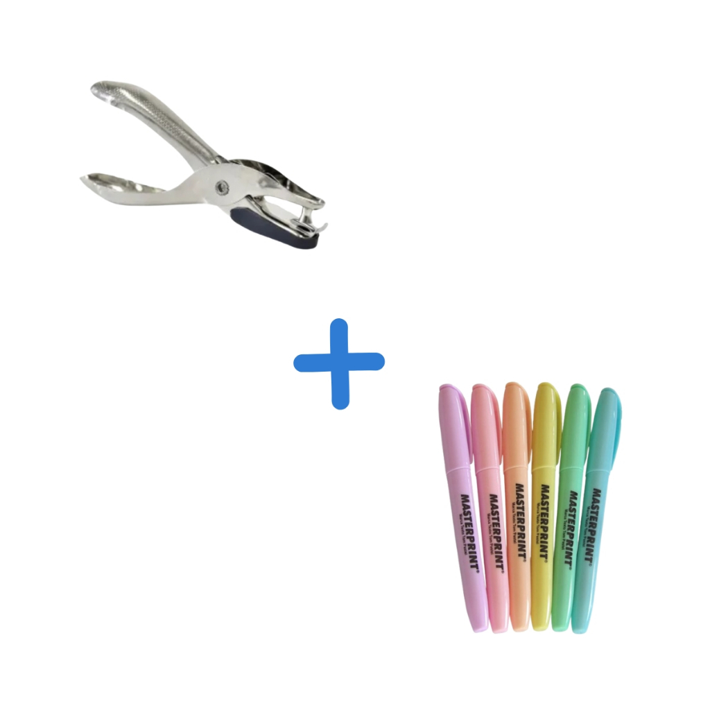 Kit C/ 01 Perfurador de Papel Furo Único 6mm + 06 Marca Texto Pastel - Masterprint