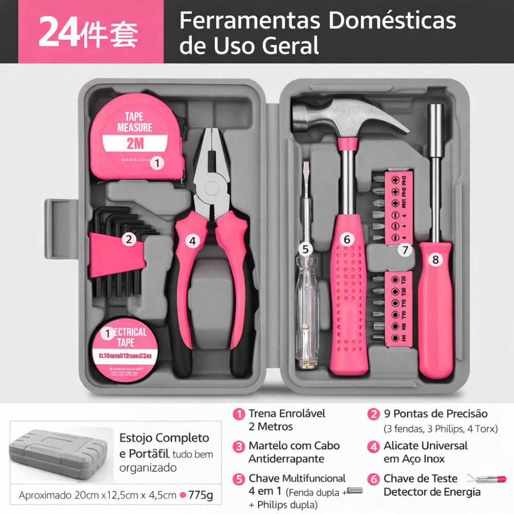 Kit Ferramentas Completo 24 Peças Com Estojo Portátil