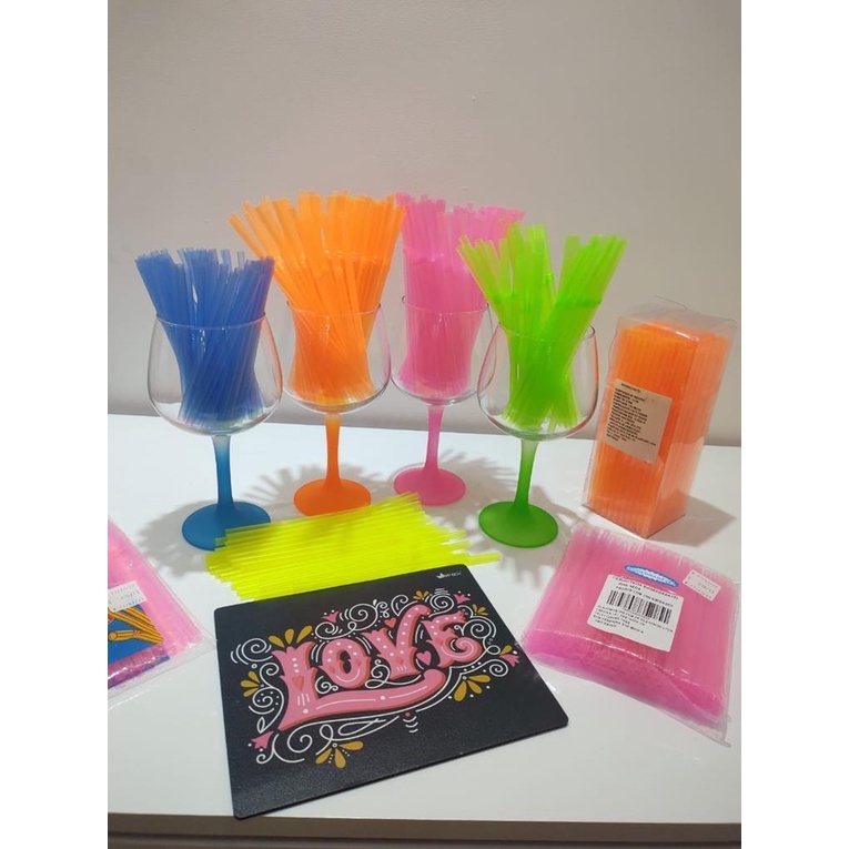 Canudo Neon Festa Neon Flexivel Biodegradavel 40 Unid