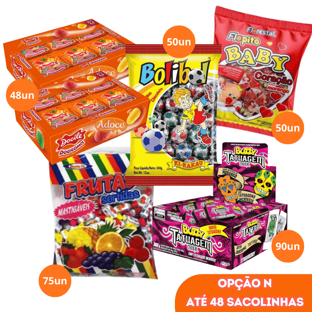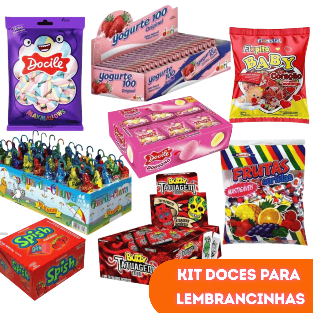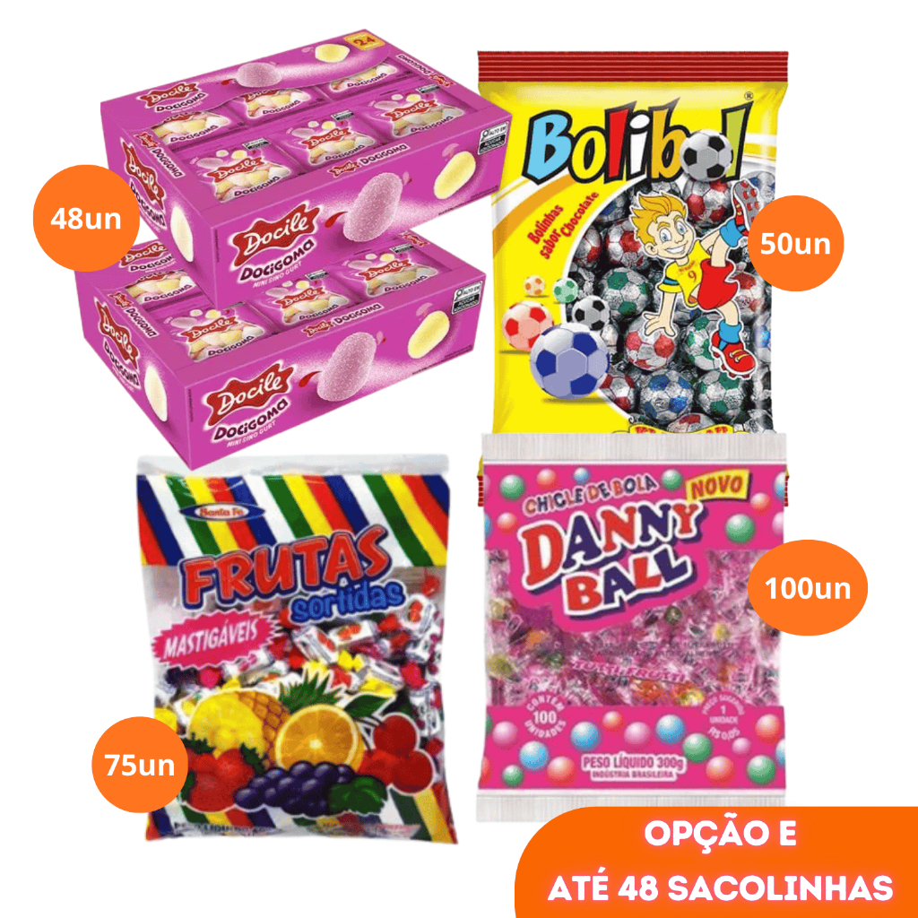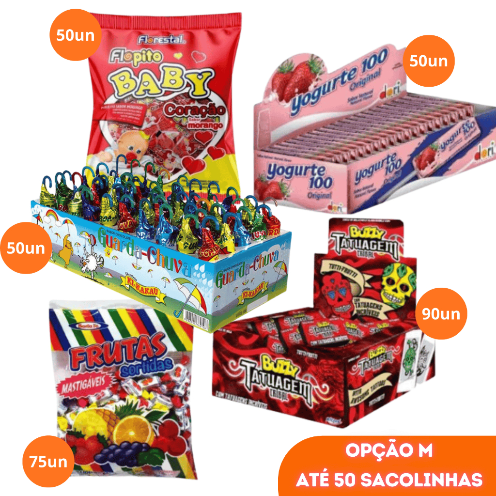 Kit Doces para montar Sacolinha Surpresa Lembrancinhas Guloseima Festa Infantil Aniversário 24 a 50