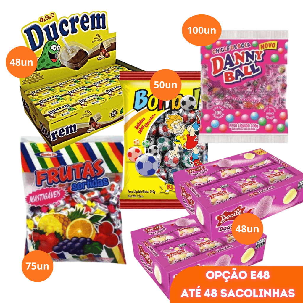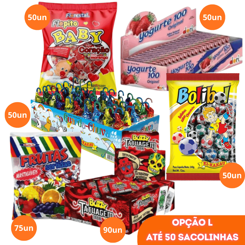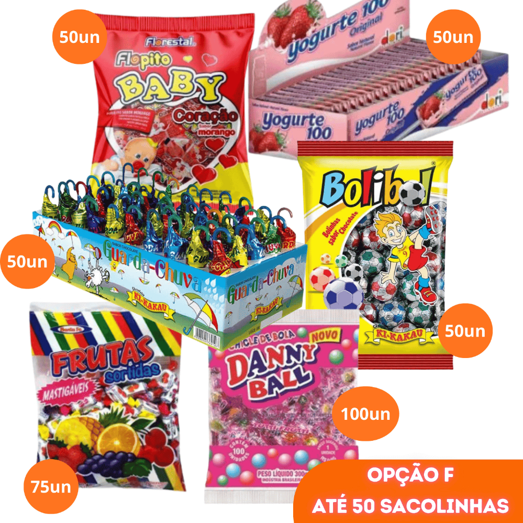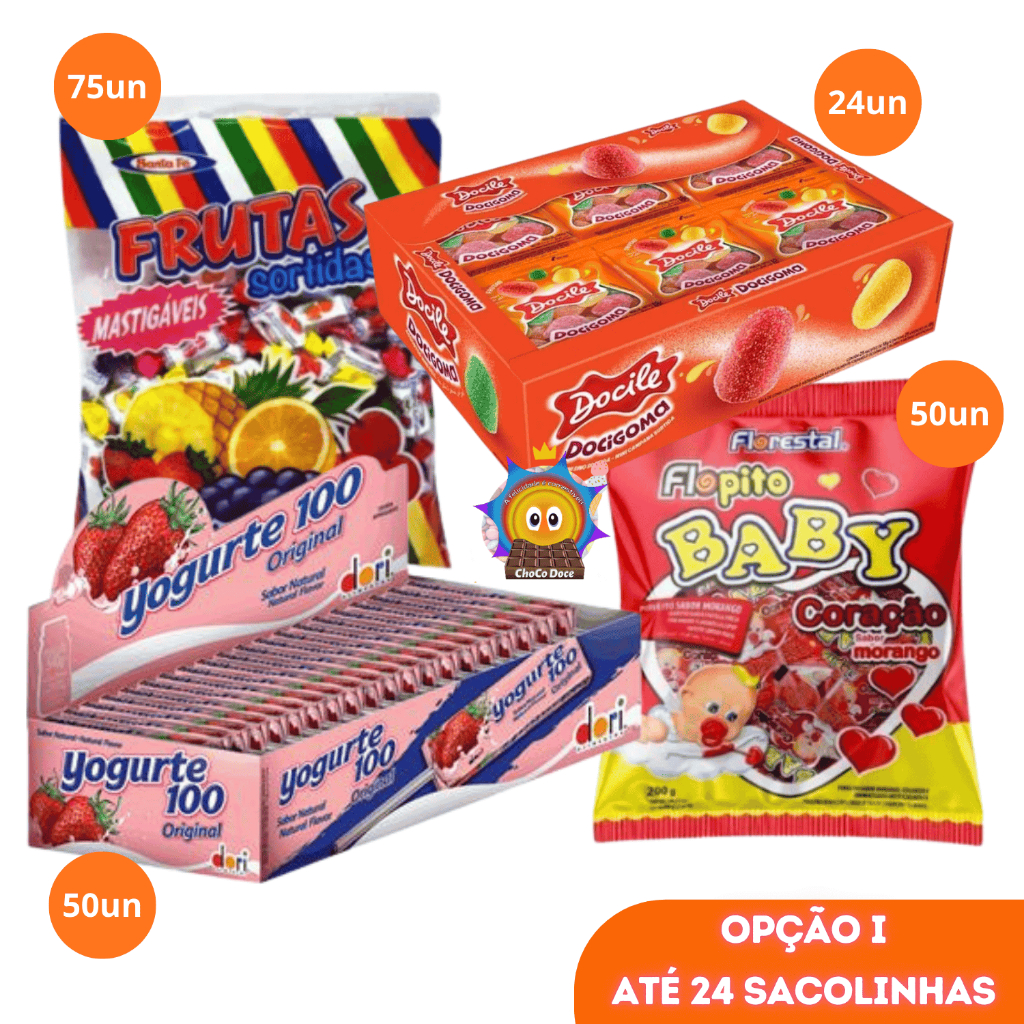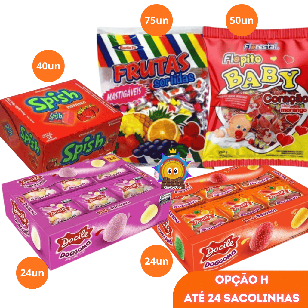 Kit Doces para montar Sacolinha Surpresa Lembrancinhas Guloseima Festa Infantil Aniversário 24 a 50
