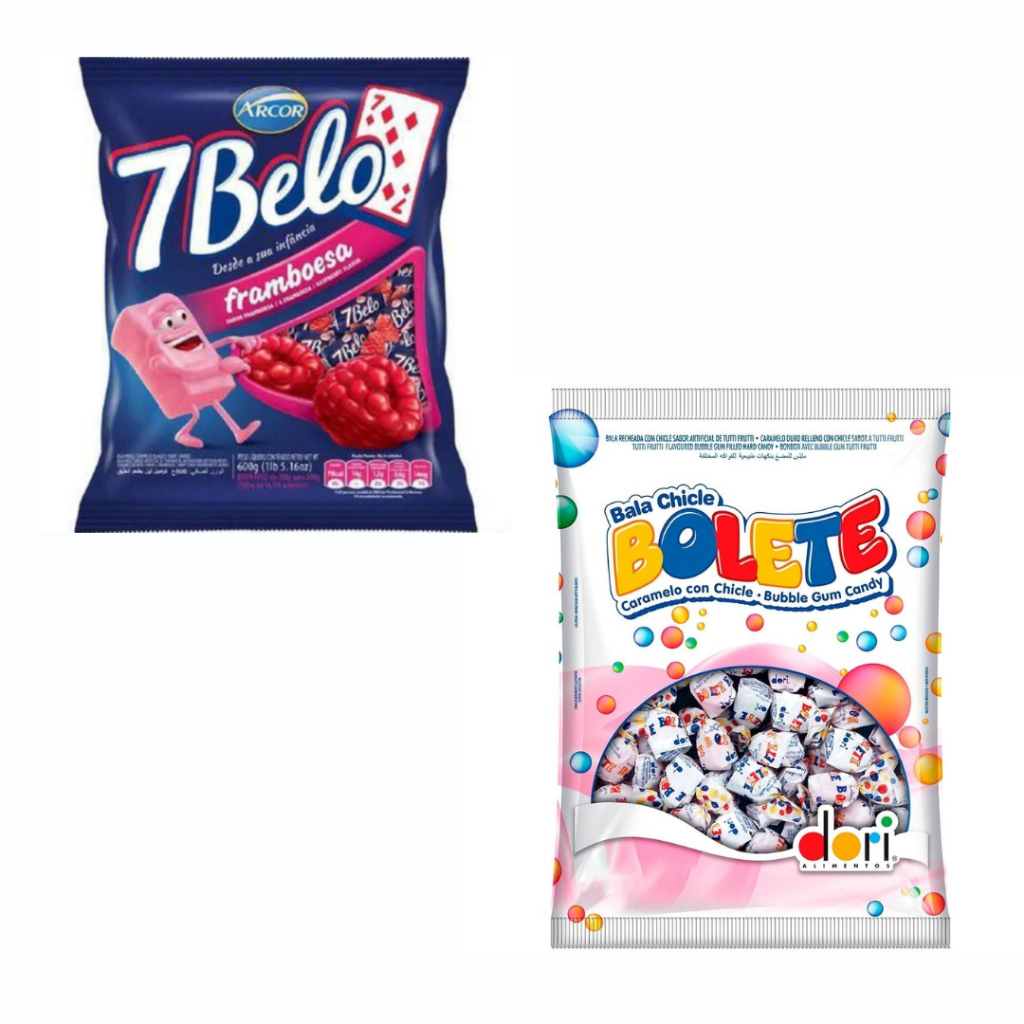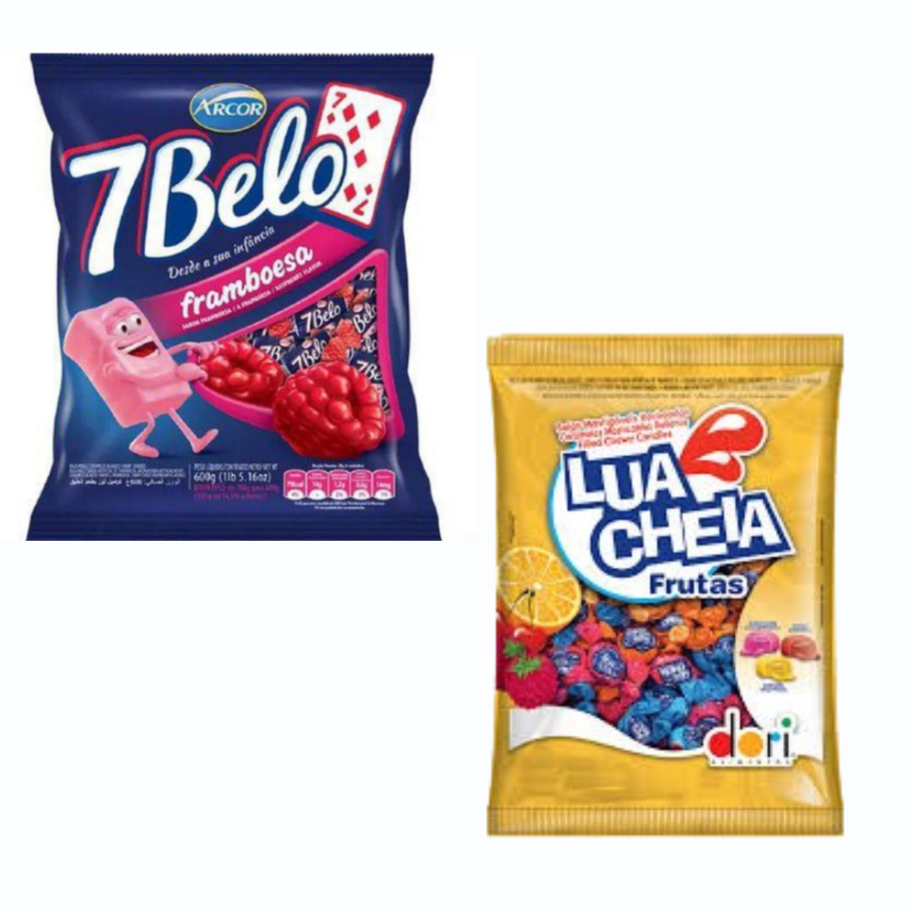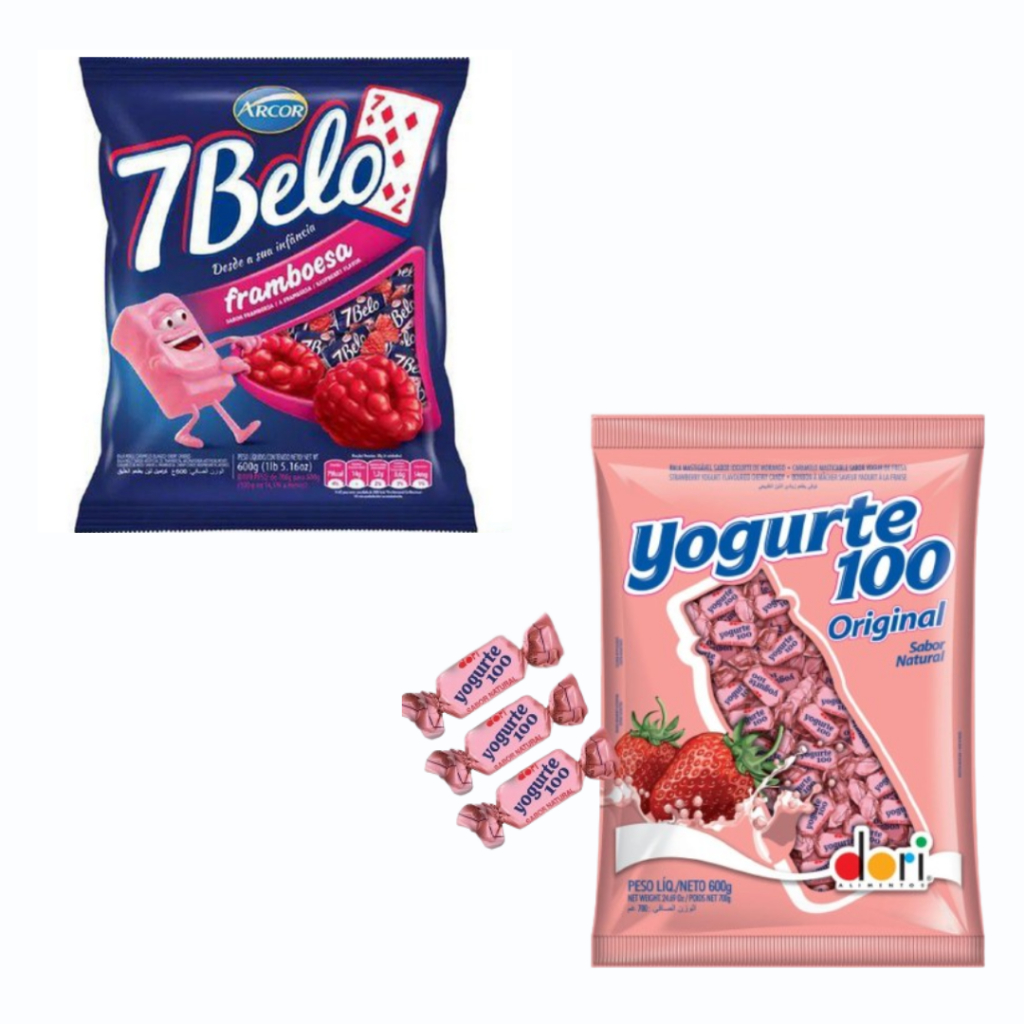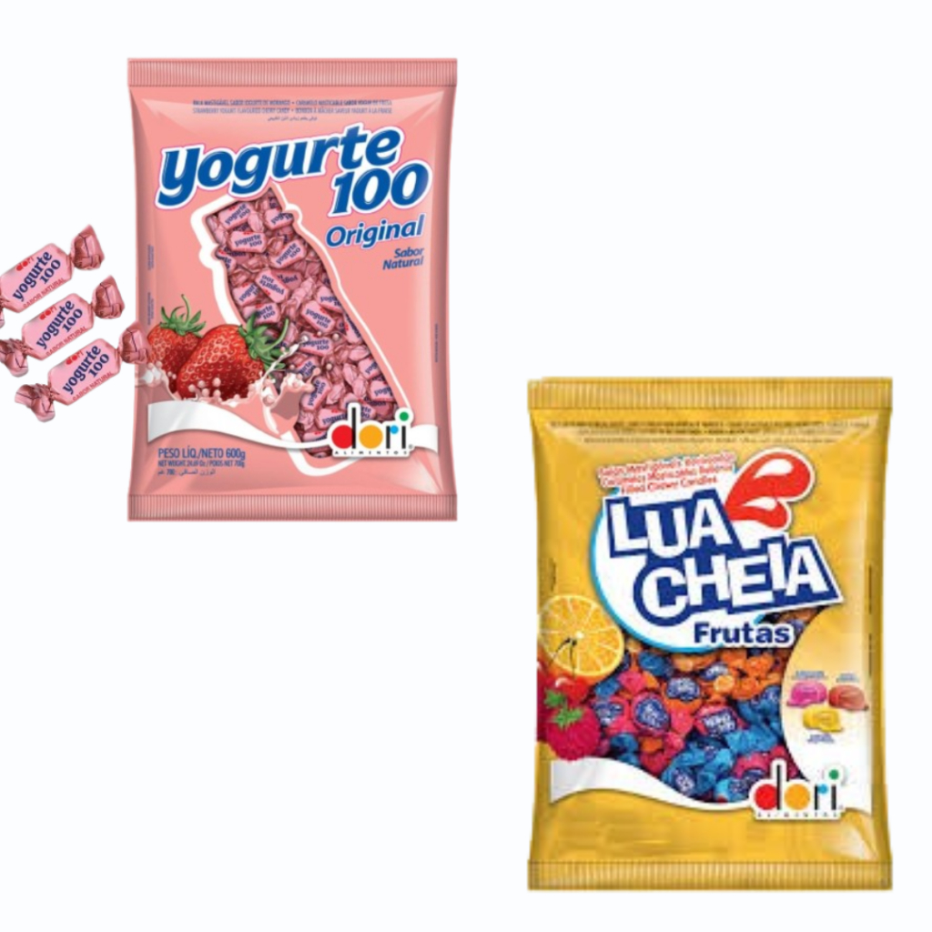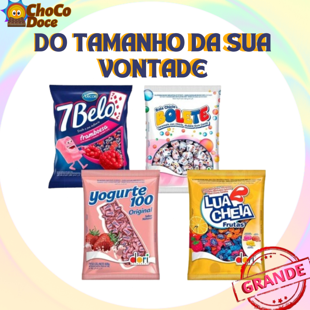 KIT Festa Balas Favoritas Mais Vendidas Yogurte 100 Bolete 7Belo Lua Cheia Lembrancinha Sacolinha